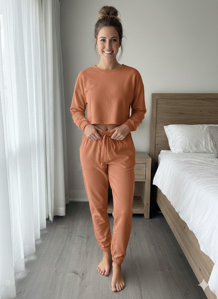Pantaloni trening dama vatuiti interior,culoare portocaliu (cărămiziu),Engros