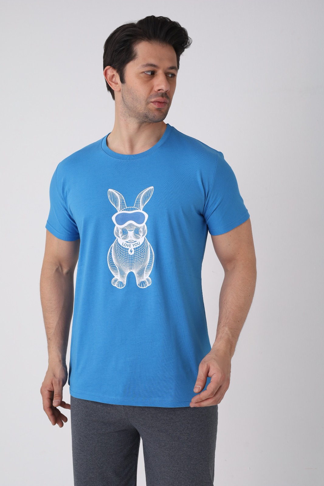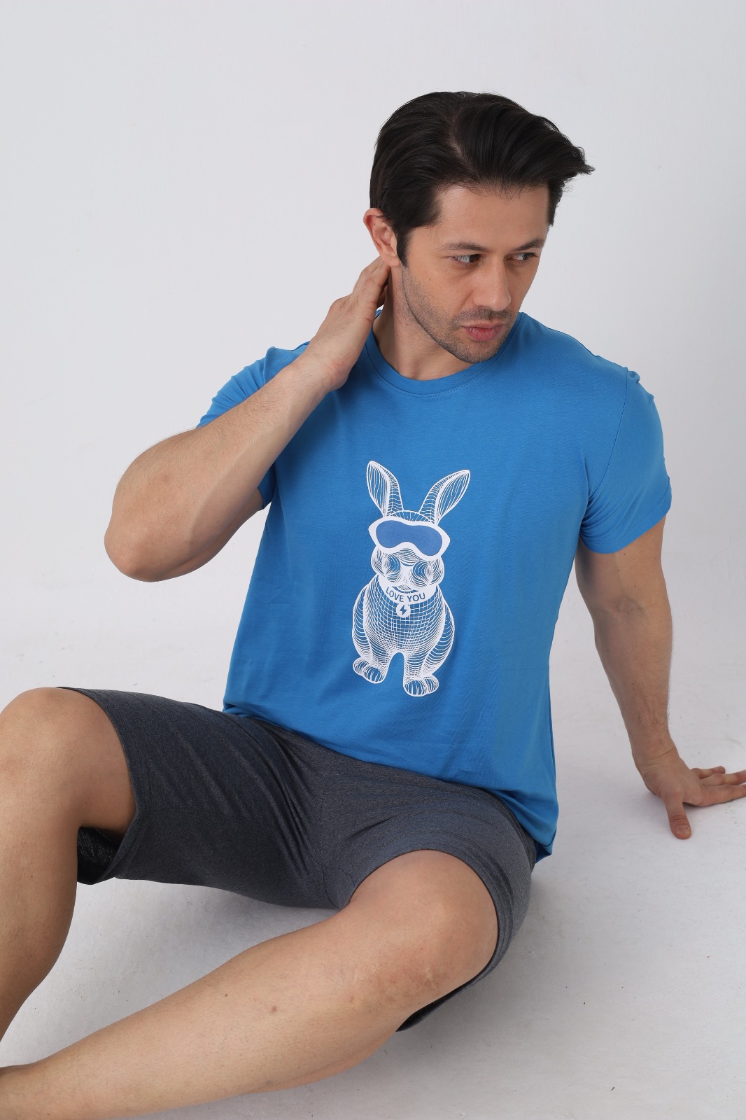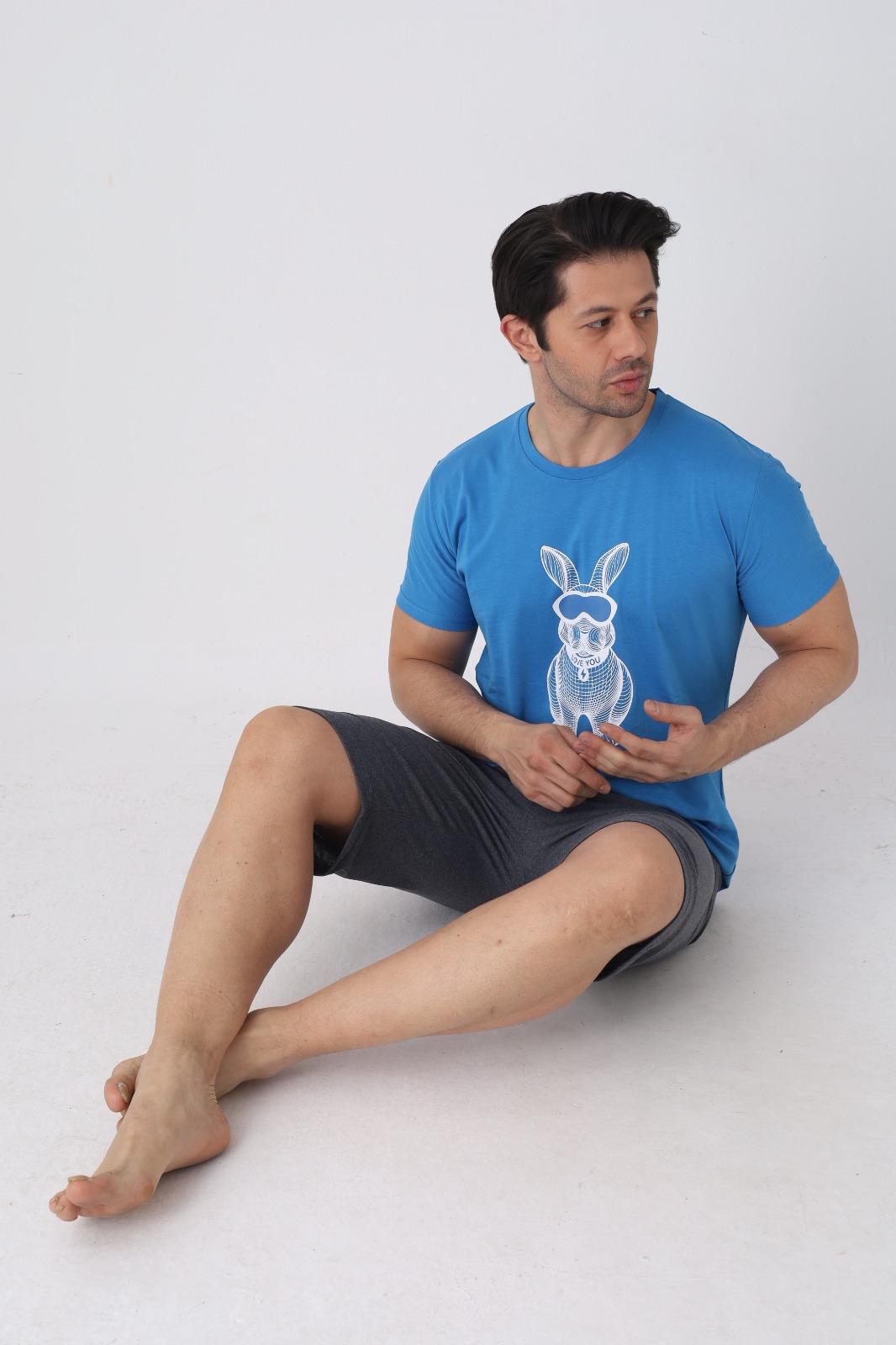 Pijama pentru bărbați, confortabilă și practică, perfectă pentru nopțile călduroase și pentru momentele de relaxare acasă. Setul este format dintr-un tricou cu mânecă scurtă și pantaloni 3/4, oferind lejeritate și libertate de mișcare.