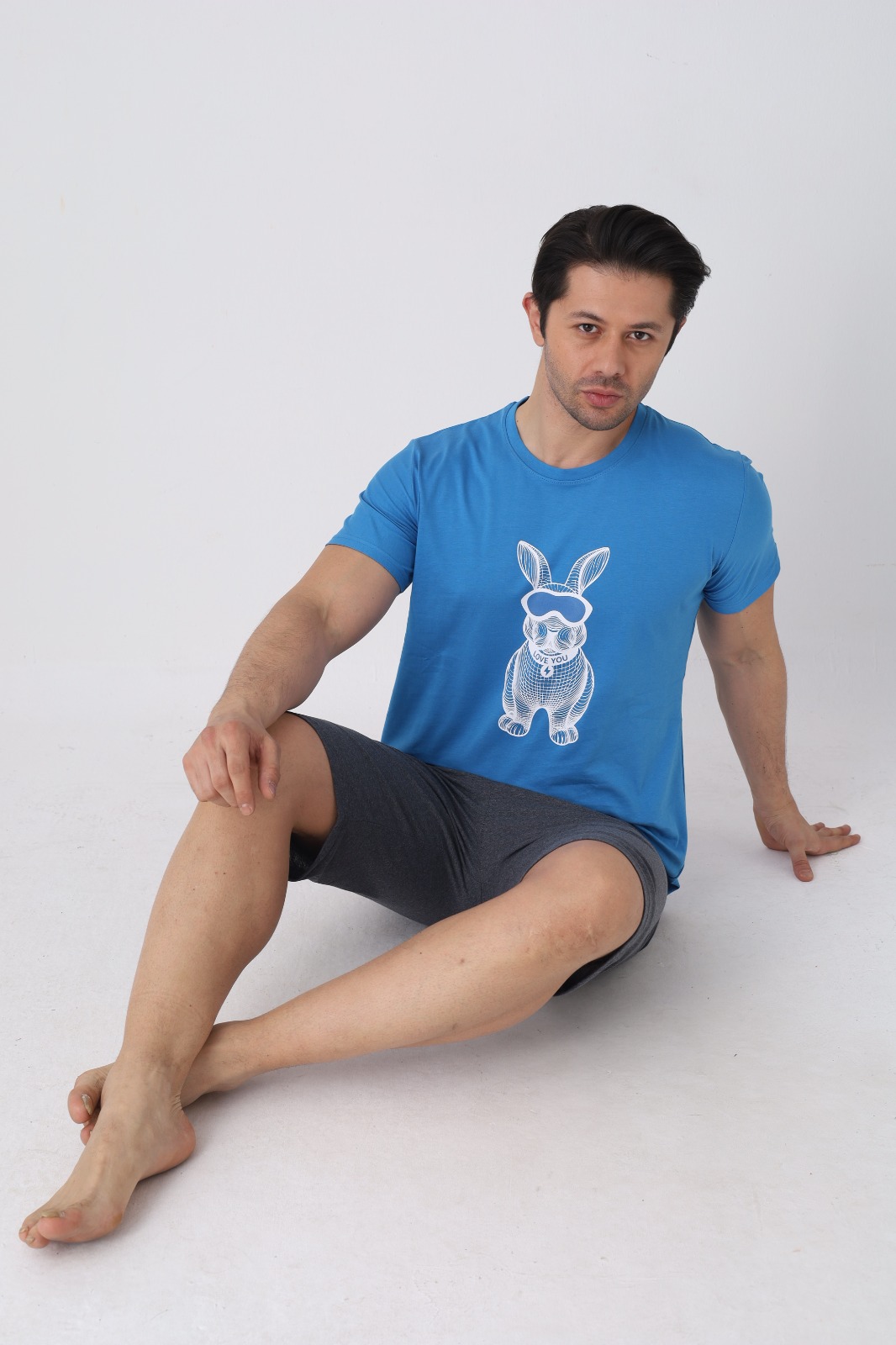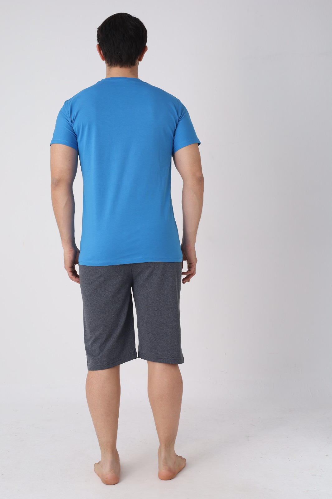 Pijama barbat cu maneca scurta si pantaloni 3/4, culoare albastru, Engros
