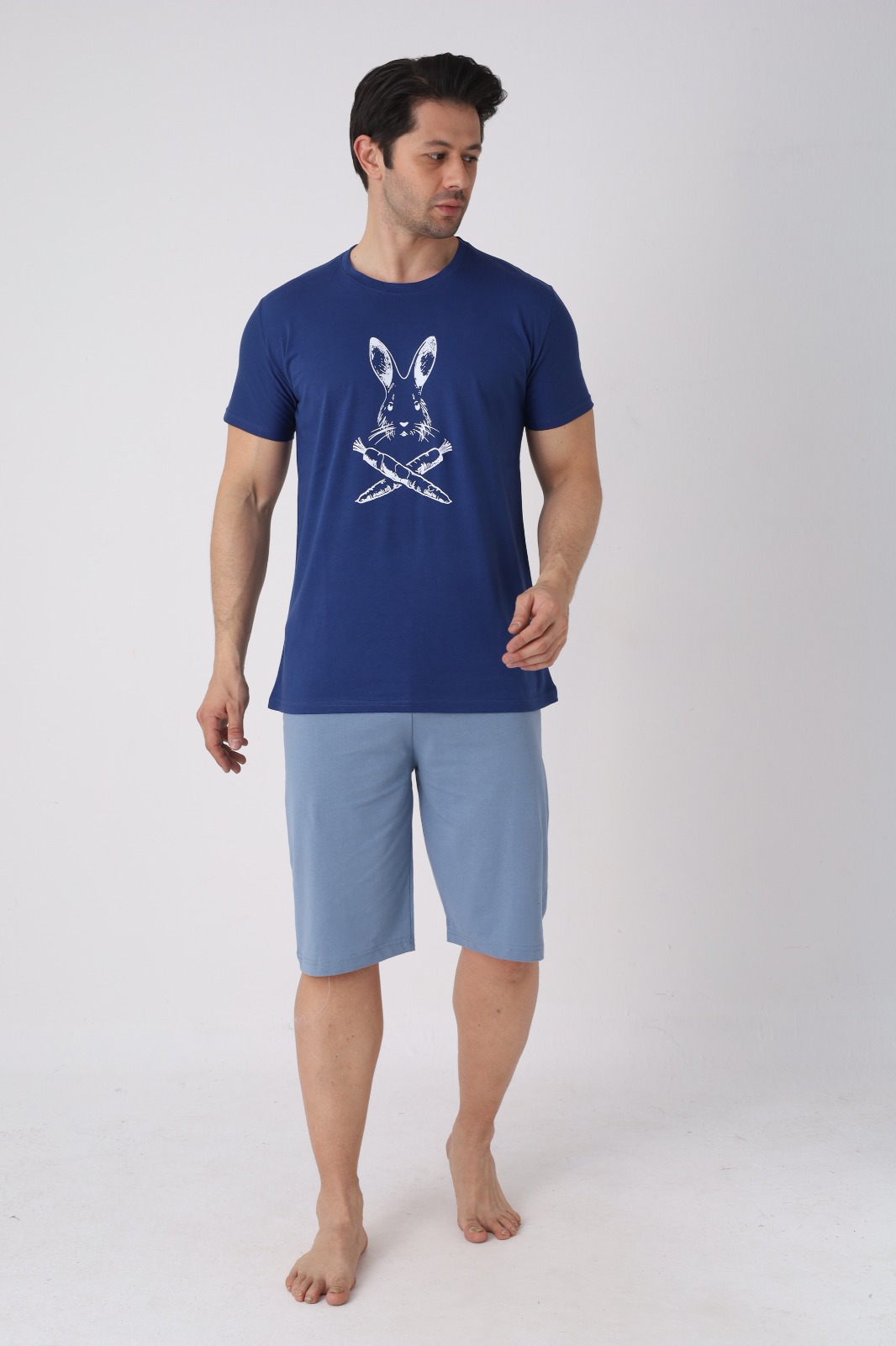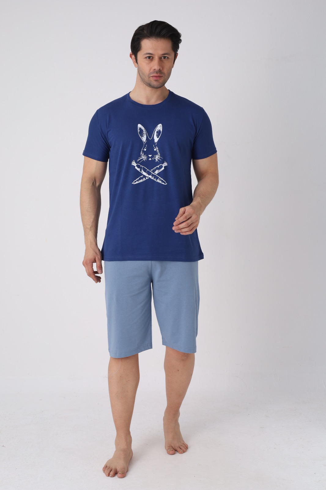 Pijama barbat cu maneca scurta si pantaloni 3/4, culoare bleumarin, Engros