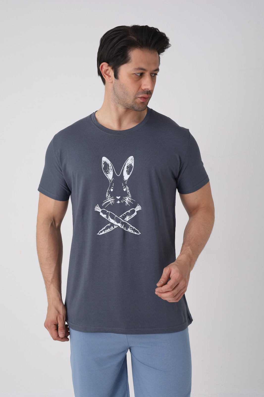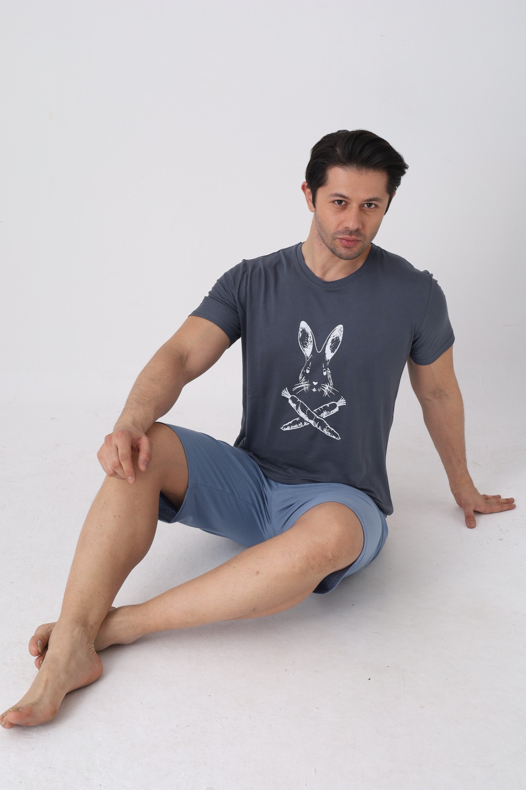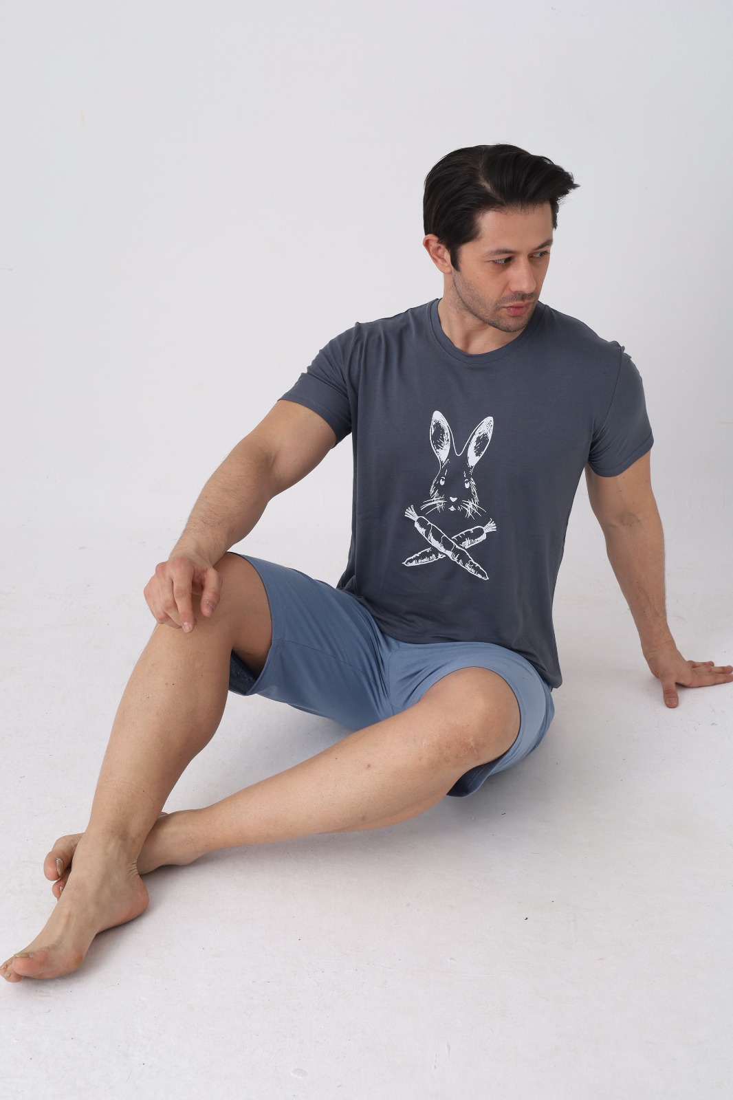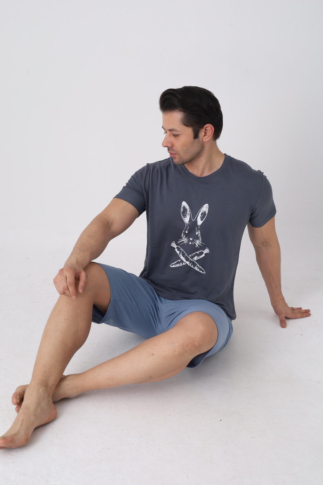 Pijama pentru bărbați, confortabilă și practică, perfectă pentru nopțile călduroase și pentru momentele de relaxare acasă. Setul este format dintr-un tricou cu mânecă scurtă și pantaloni 3/4, oferind lejeritate și libertate de mișcare.