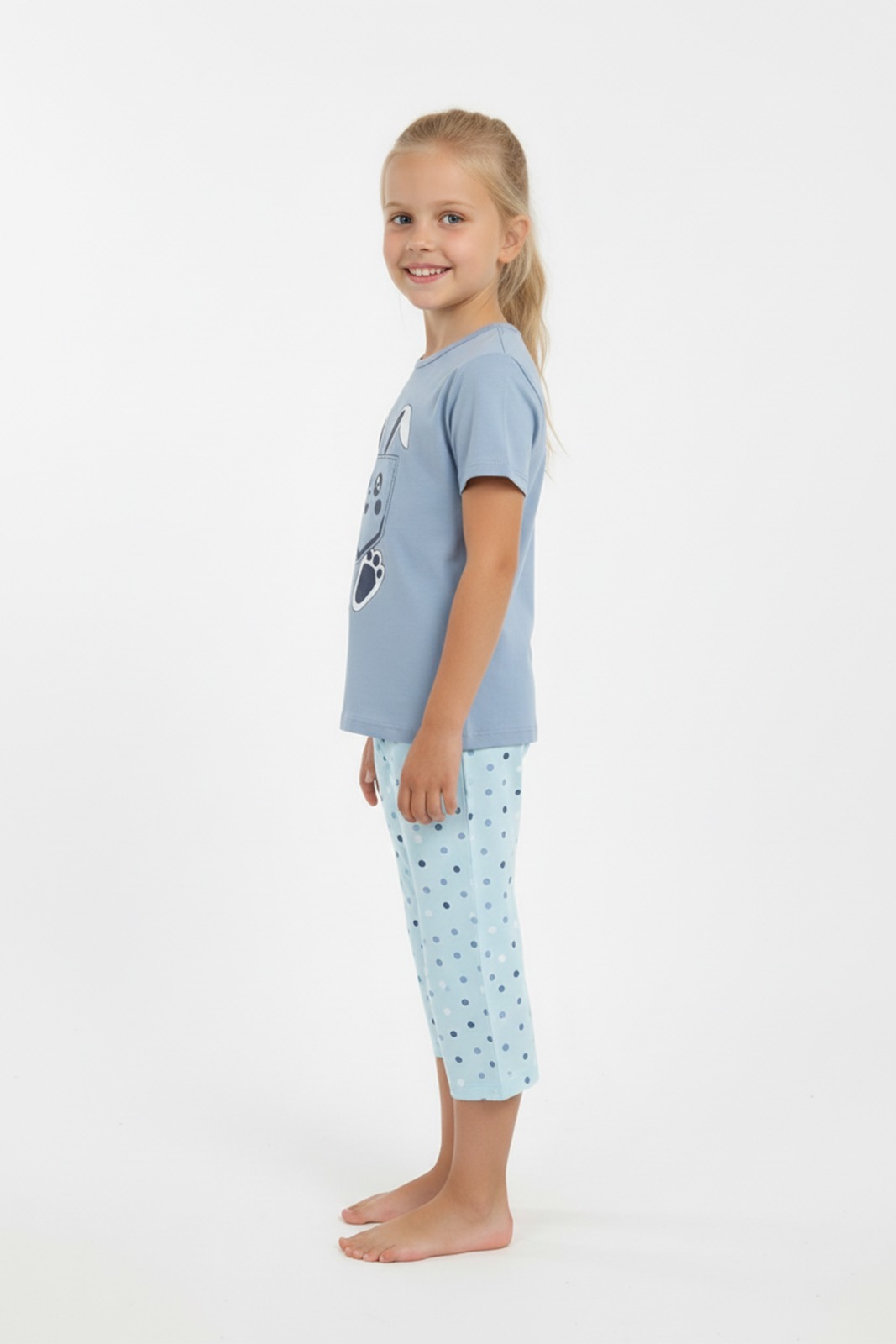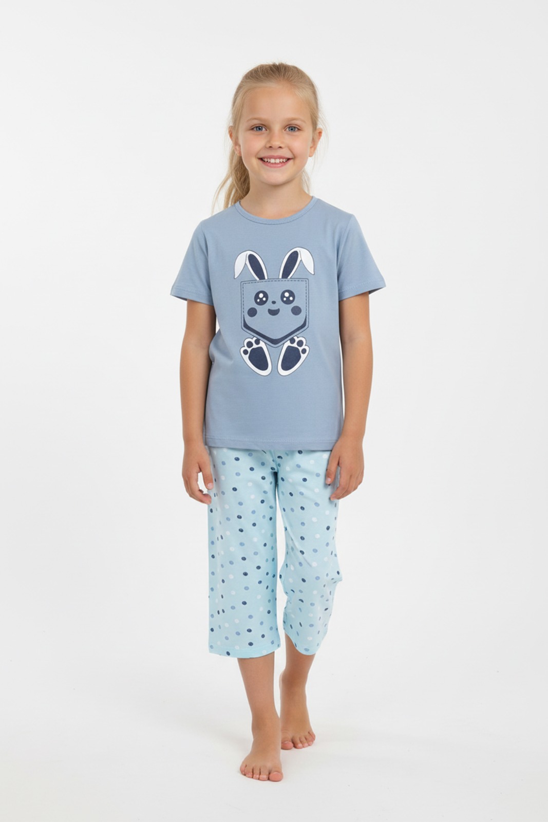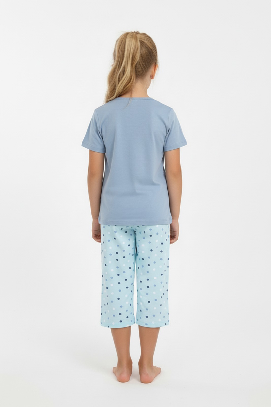 Pijama copii cu maneca scurta si pantaloni 3/4,culoare bleu, Engros