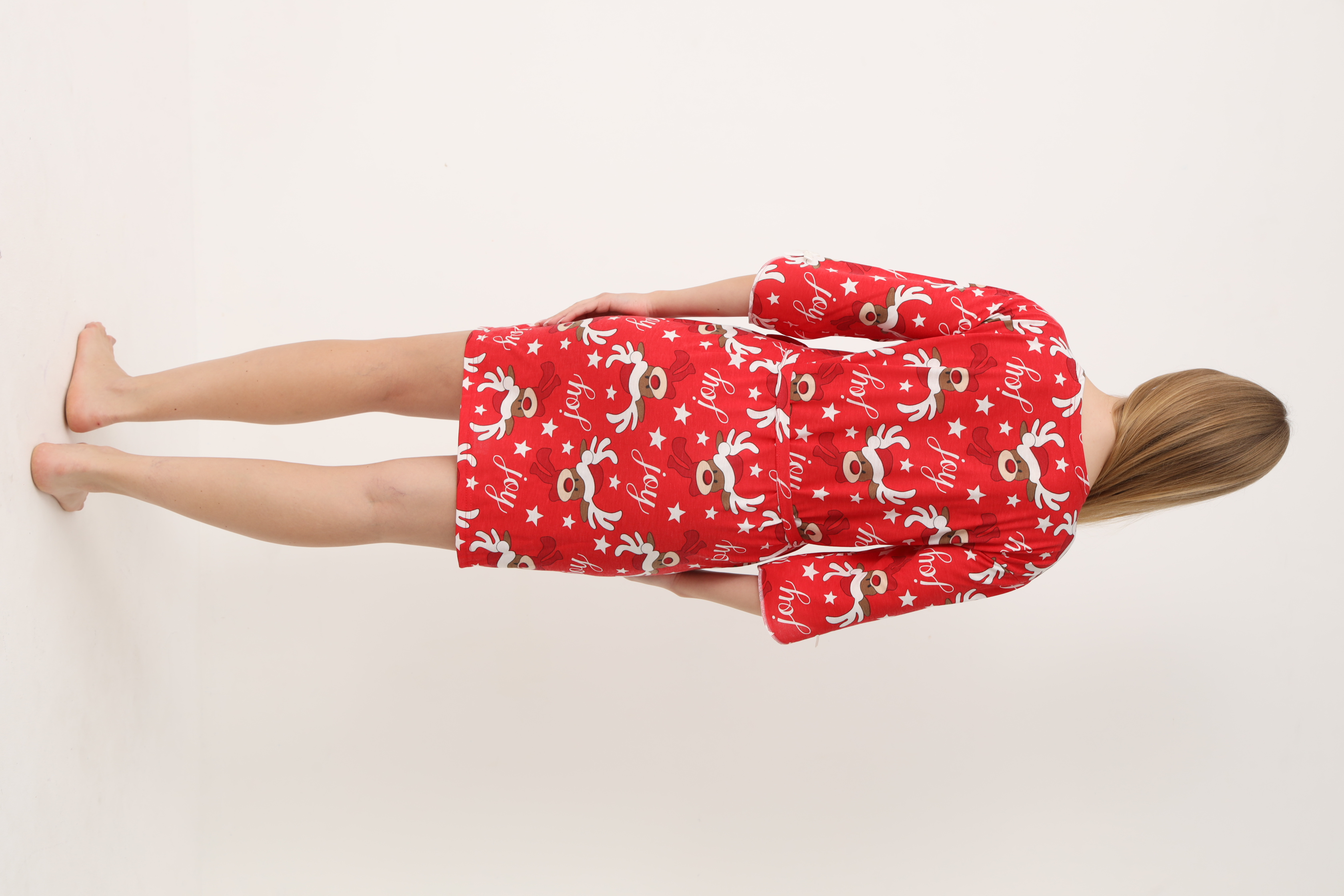 Halat dama Craciun,maneci 3/4,imprimeu reni ,culoare rosu ,En-gros