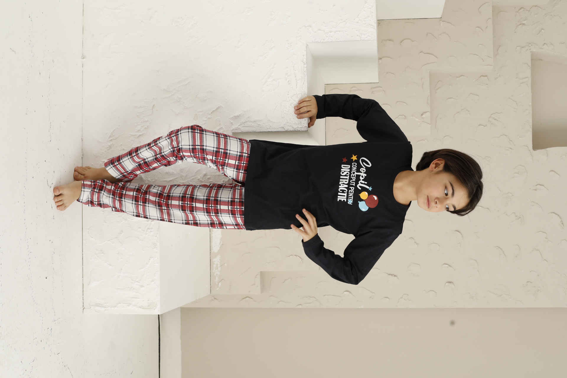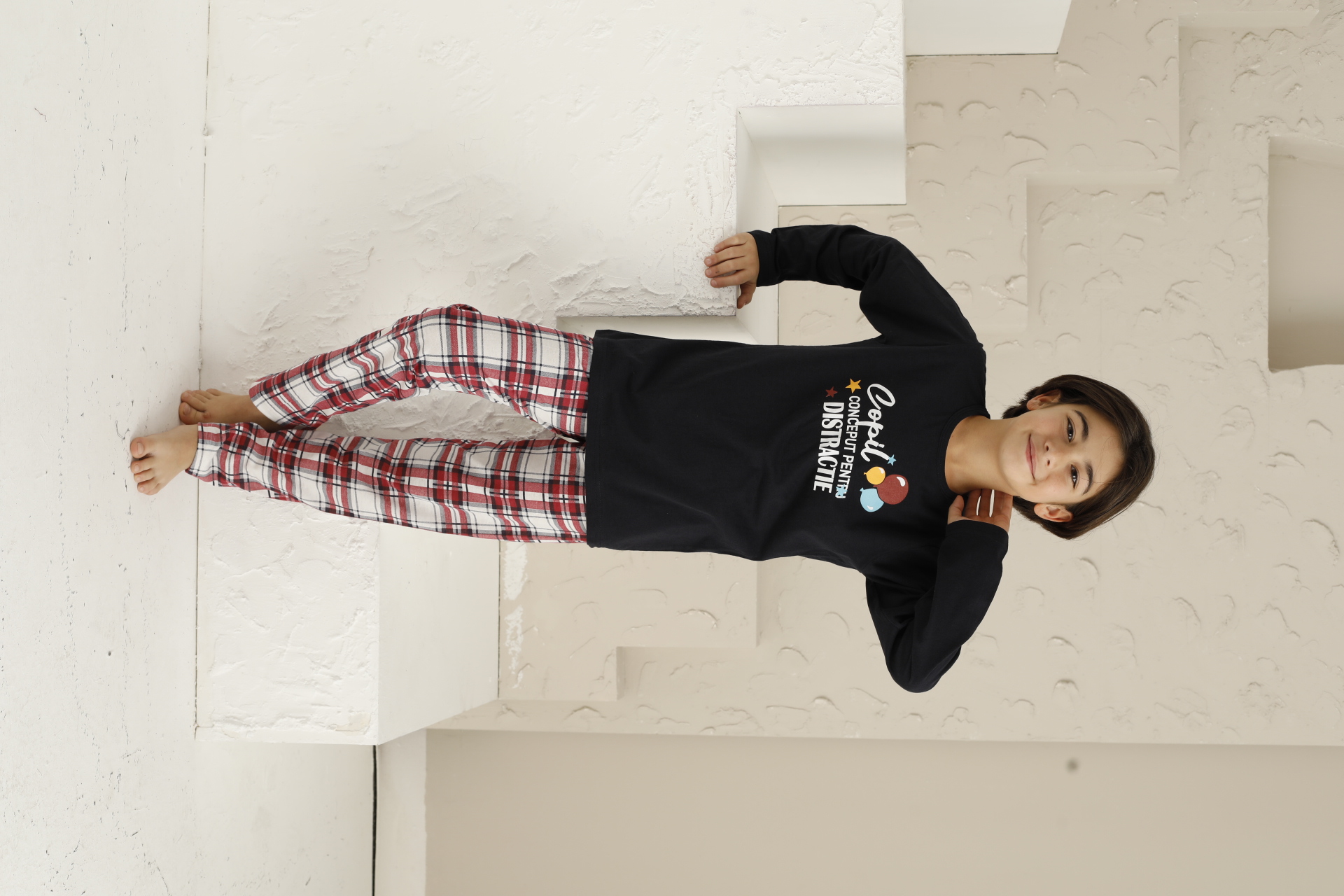 Pijama Băieți cu Maneca Lungă și Pantaloni Lungi, model ,,Copil Conceput Pentru Distractie''Culoare Negru,Engros