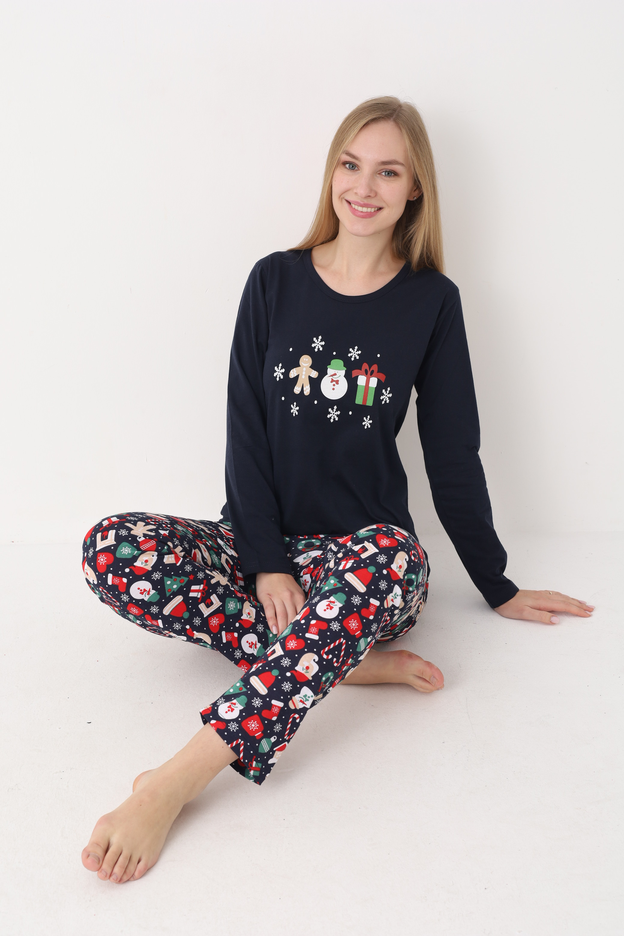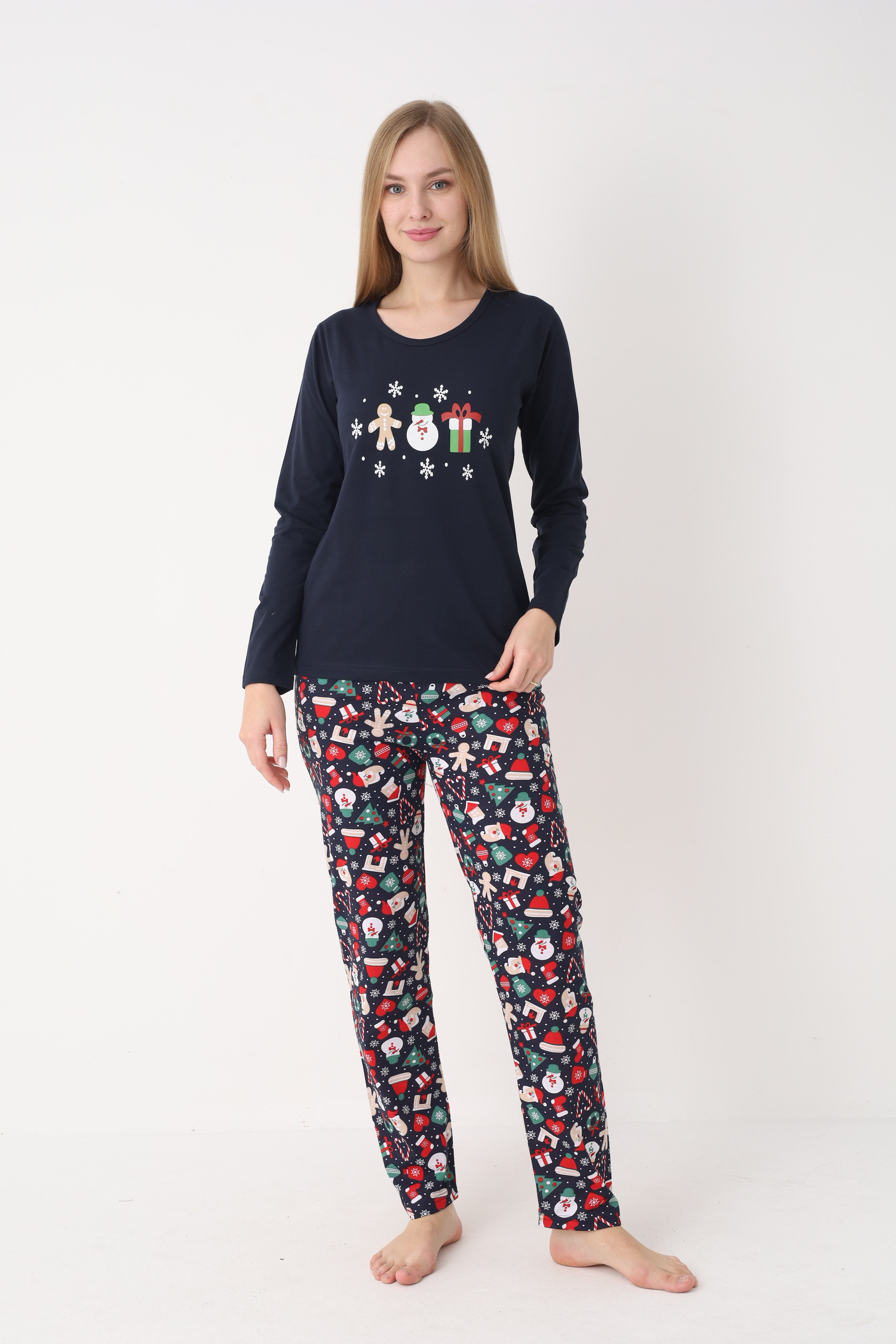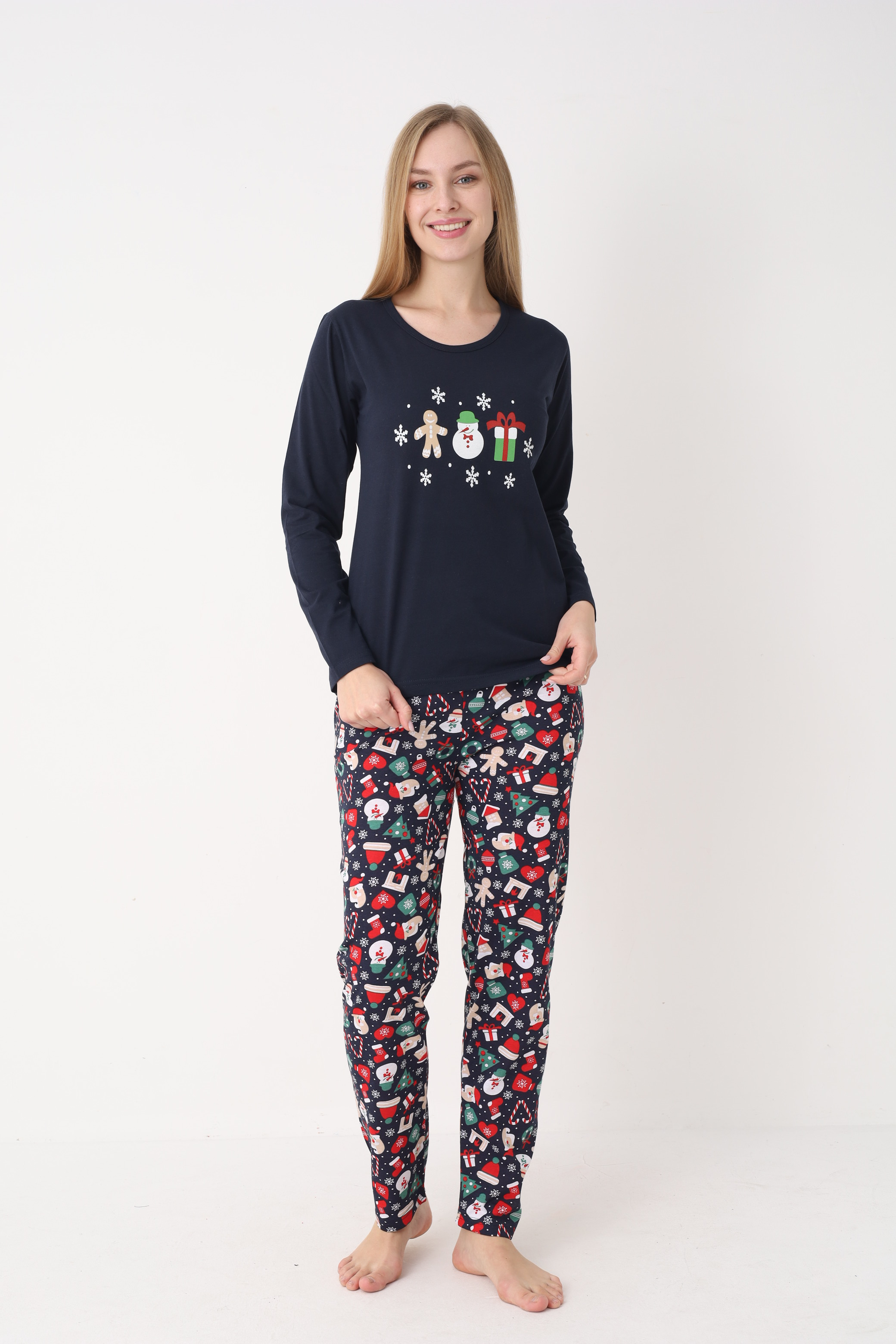 Pijama dama Craciun,maneca lunga si pantaloni lungi,imprimeu figurine festive, En-gros