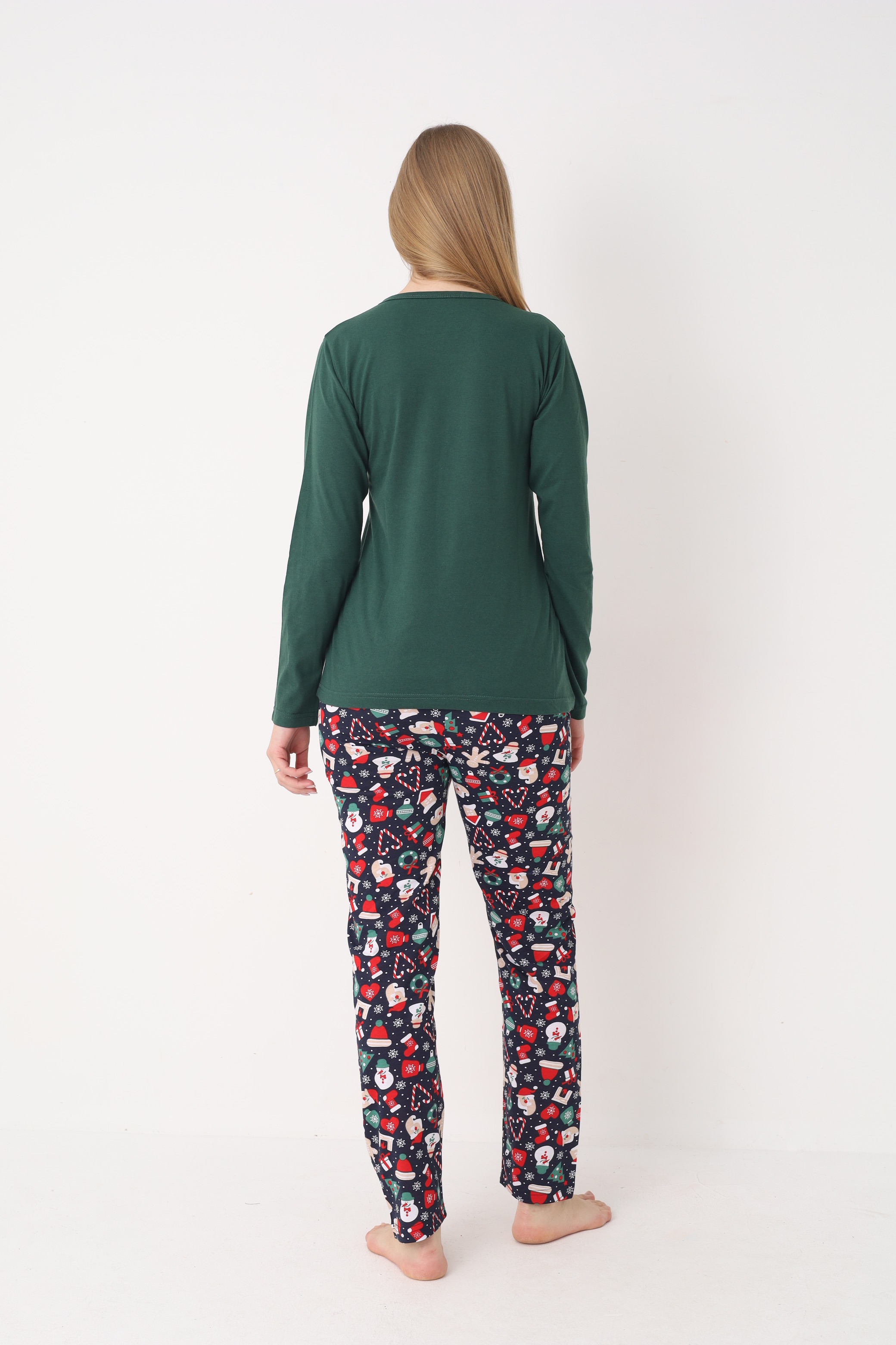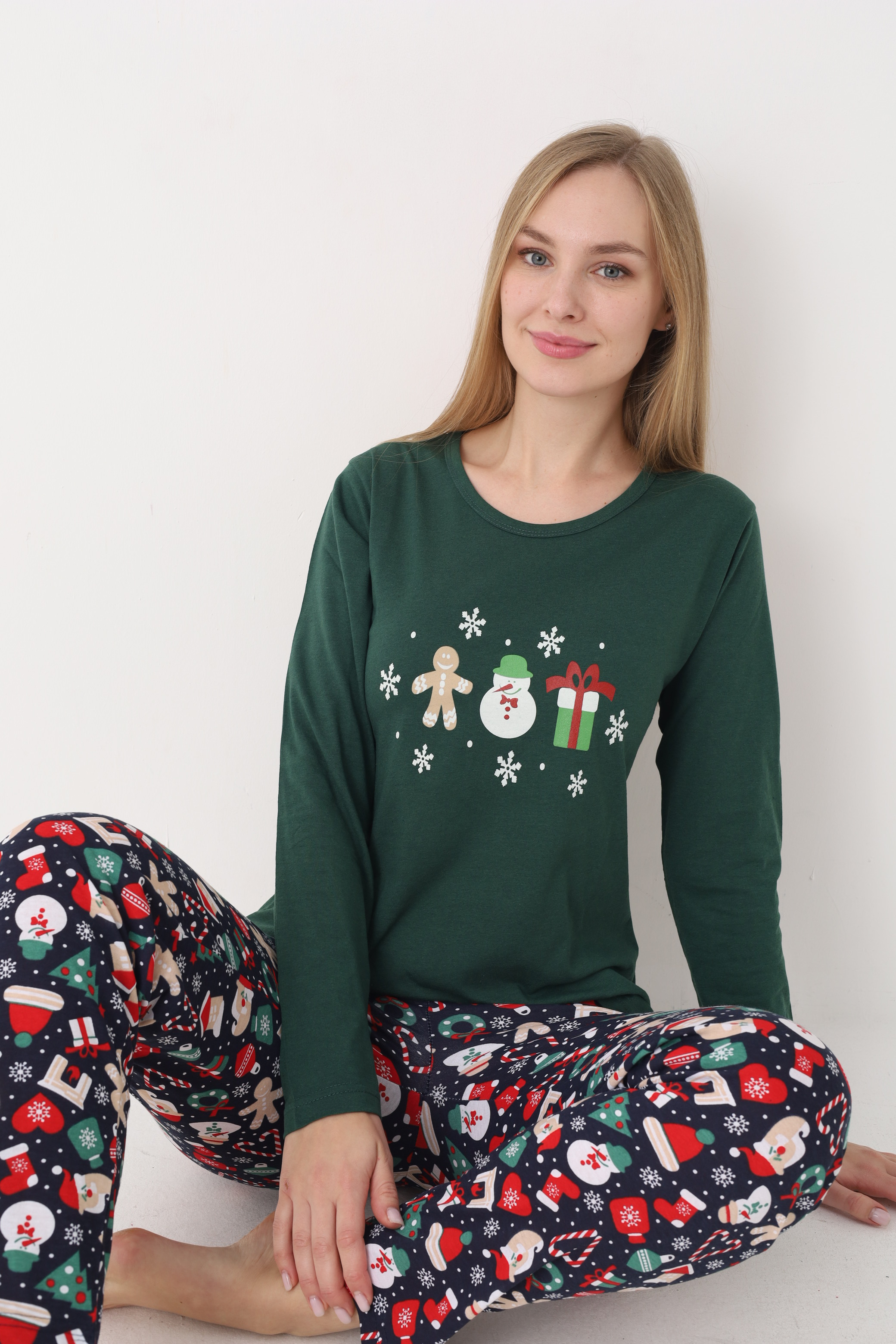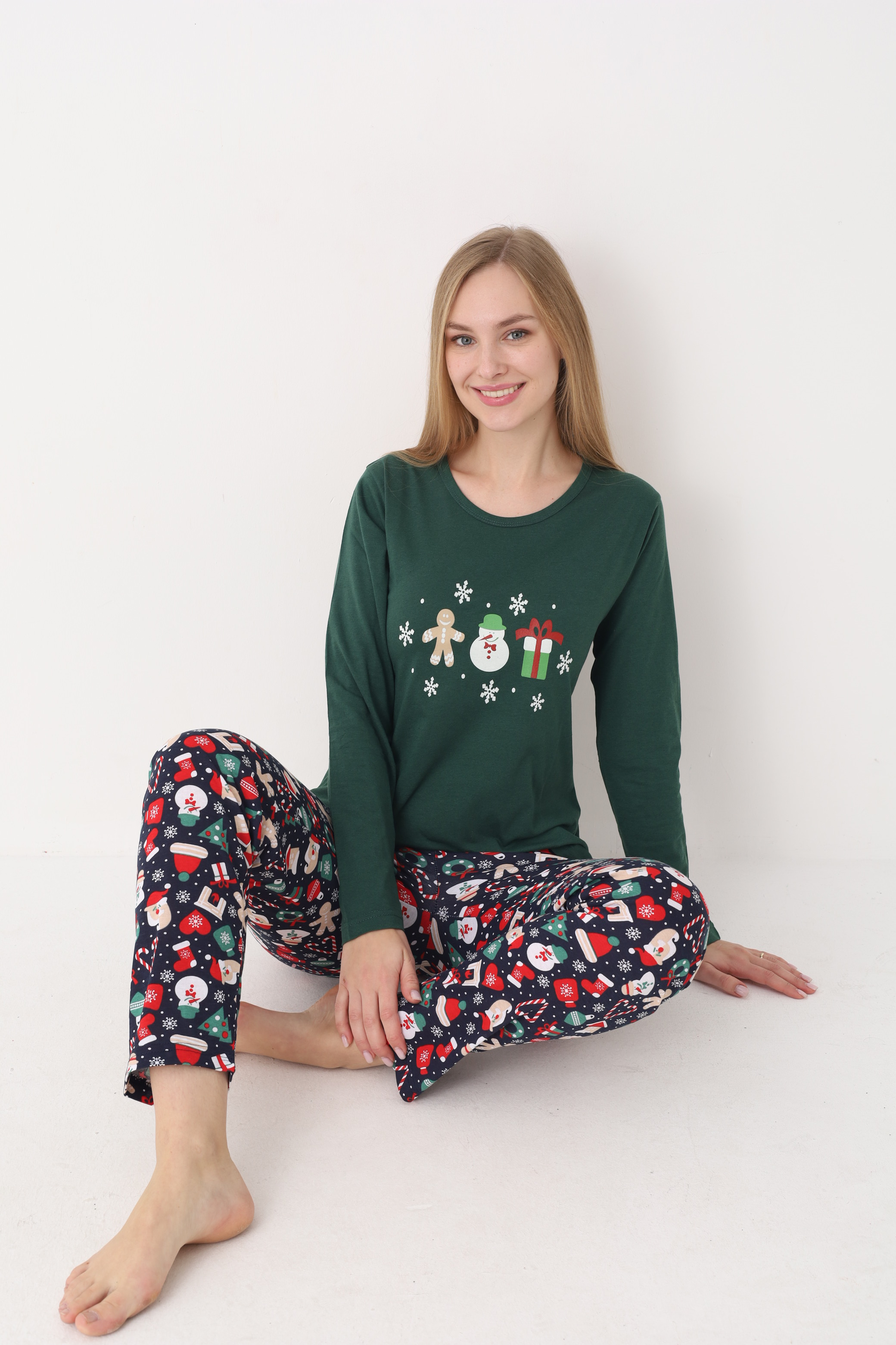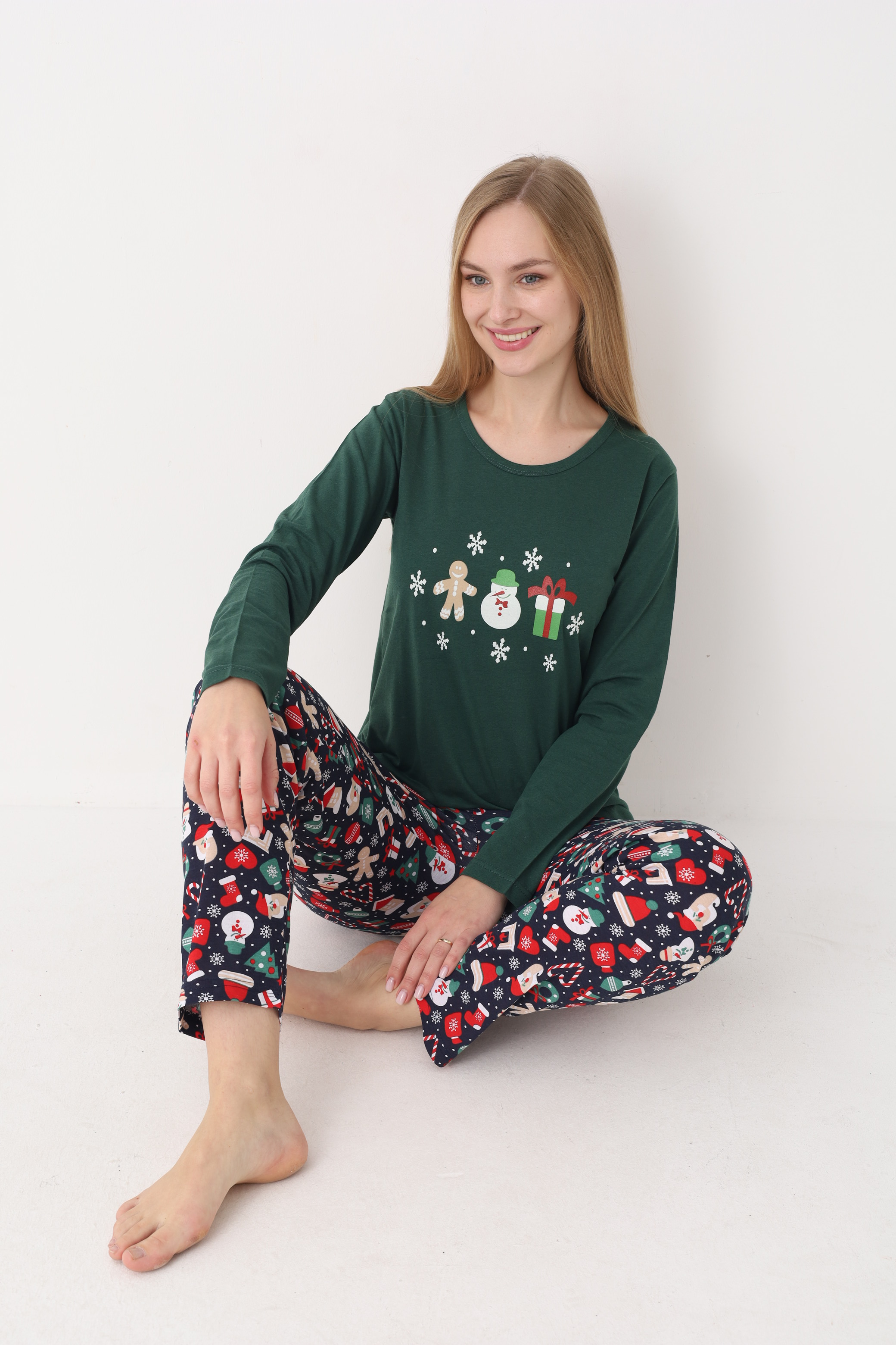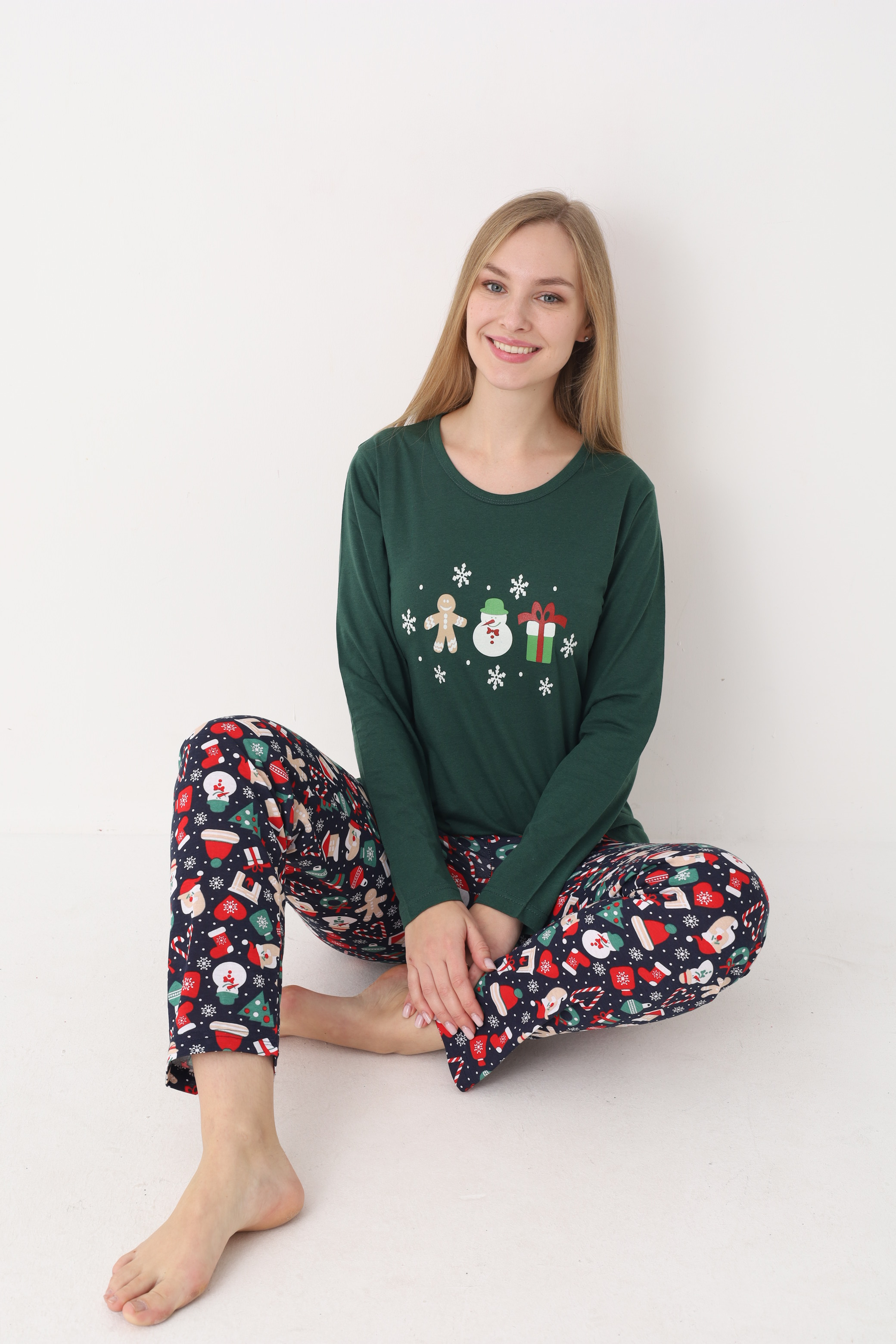 Pijama dama Craciun,maneca lunga si pantaloni lungi,imprimeu figurine festive, En-gros