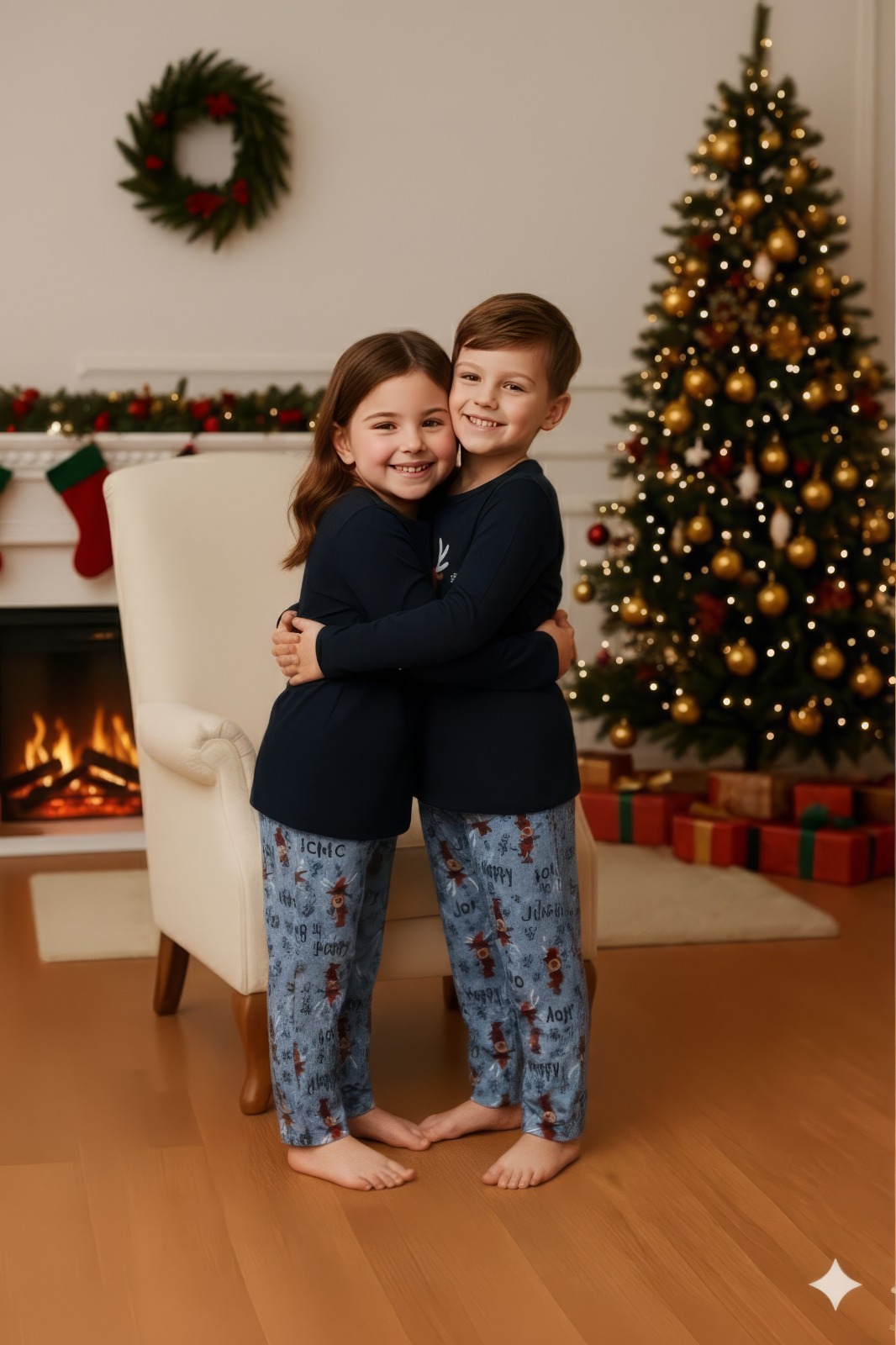 Sunt alegerea perfecta pentru serile de iarna si atmosfera magica a sarbatorilor.Set este cofectionat dintr-un material moale ,placut la atingere si confortabil ,ideal pentru pielea sensibila a celor mici .Pijamalele sunt perfecte pentru somn ,joaca in casa sau pentru poze de familie in spirit festiv.