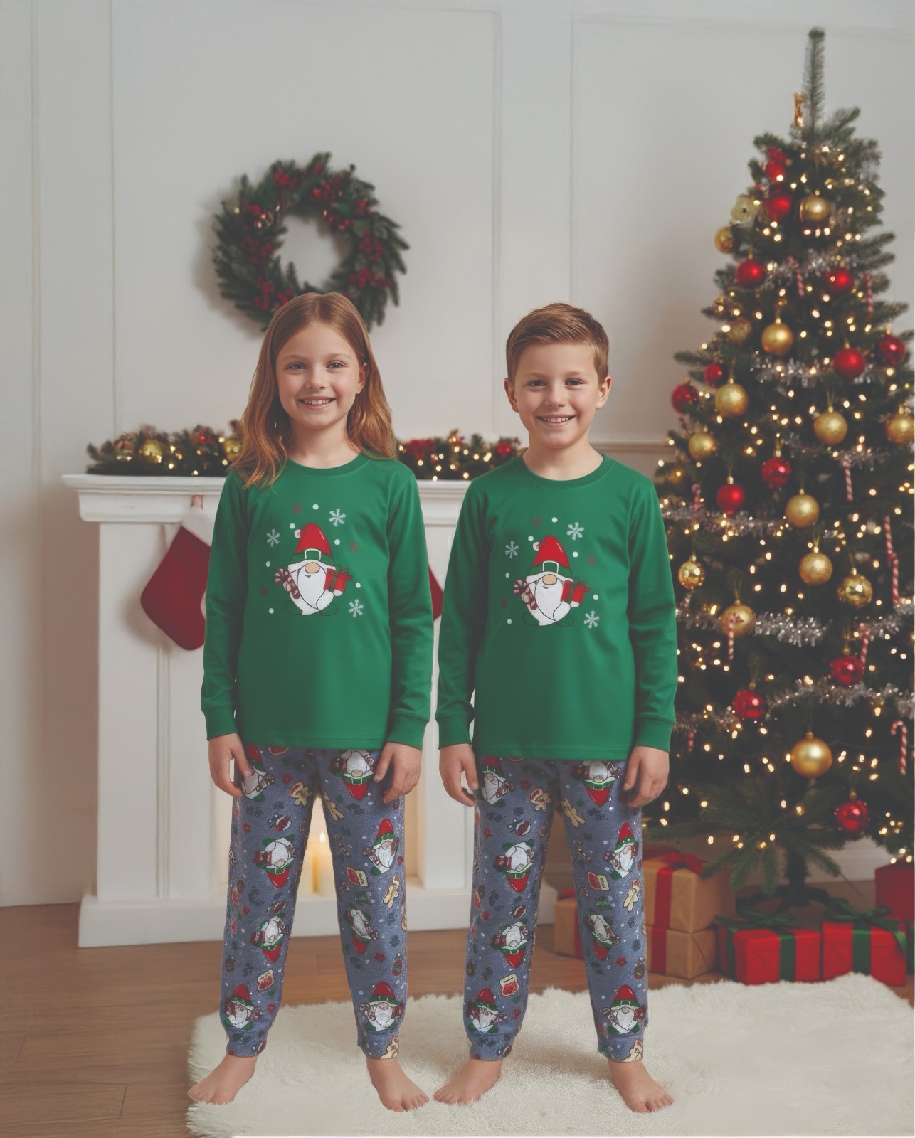 Pijamale de Craciun de copii,cu maneci si pantaloni lungi ,imprimeu pitic ,En-gros
