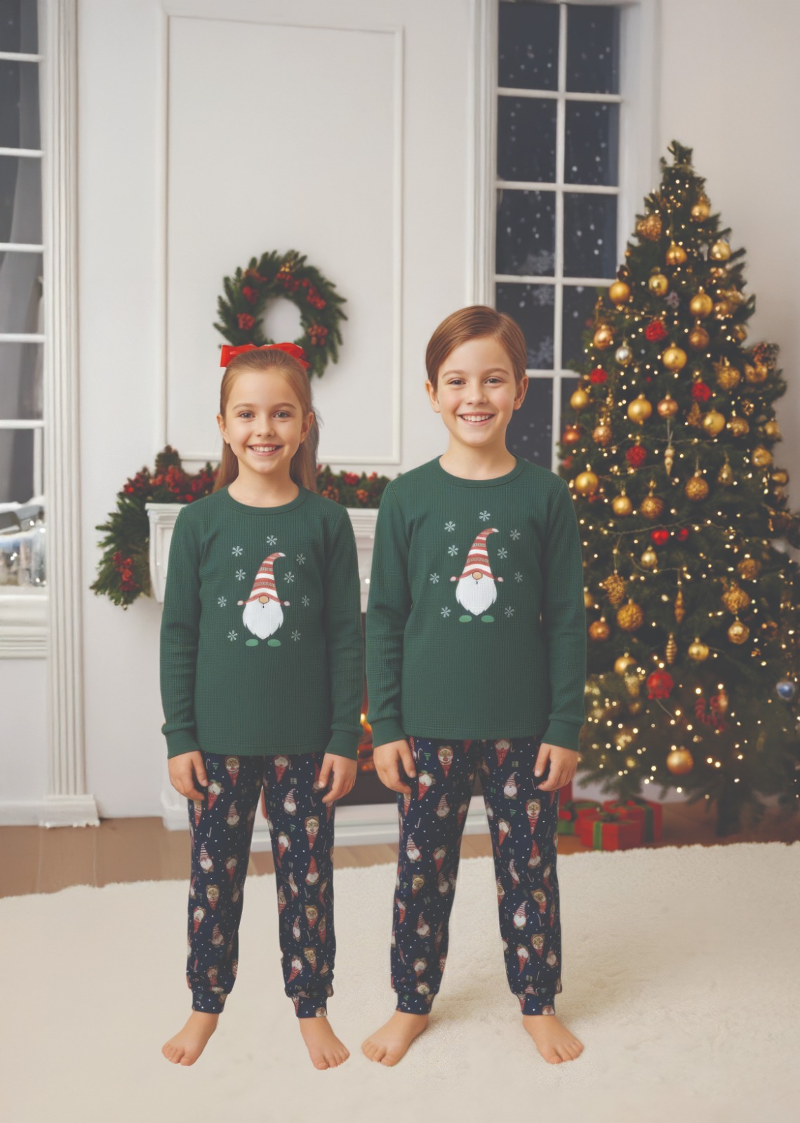 Pijamale de Craciun de copii,cu maneci si pantaloni lungi ,imprimeu pitic si fulg de zapada ,En-gros