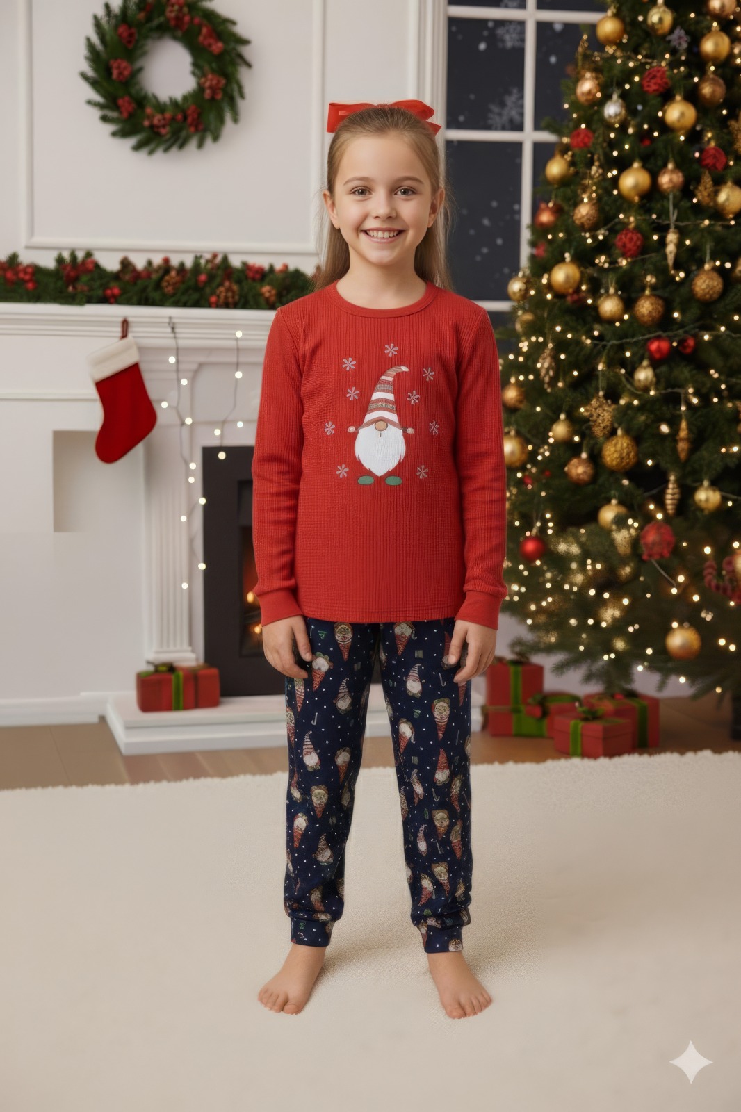Sunt alegerea perfecta pentru serile de iarna si atmosfera magica a sarbatorilor.Set este cofectionat dintr-un material moale ,placut la atingere si confortabil ,ideal pentru pielea sensibila a celor mici .Pijamalele sunt perfecte pentru somn ,joaca in casa sau pentru poze de familie in spirit festiv.