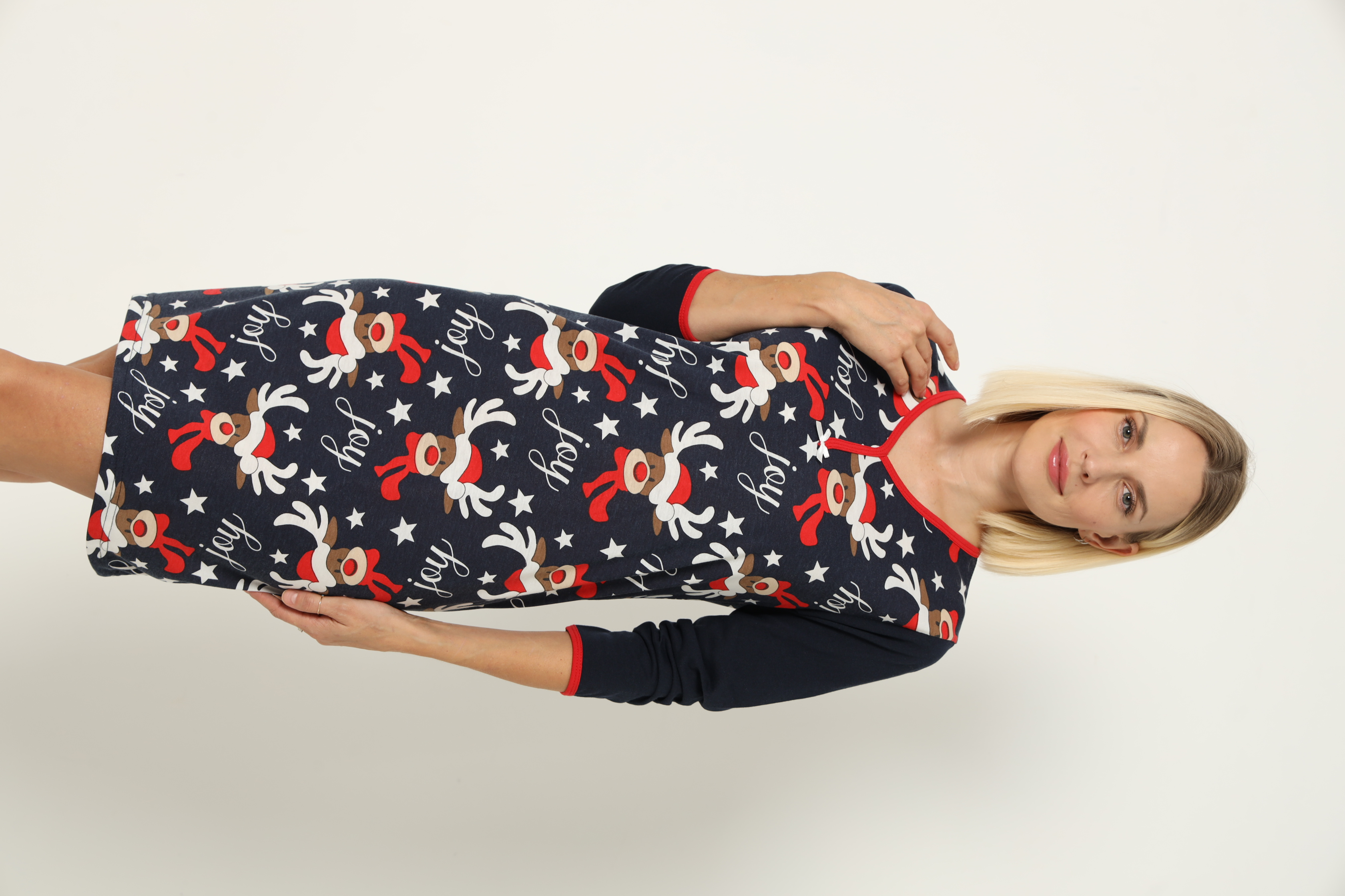 Camasa de noapte Craciun,imprimeu reni,culoare bleumarin ,En-gros