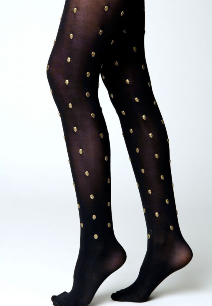 Dresurile de damă Penti „Petra” 40 den adaugă un aer îndrăzneț și original oricărei ținute. Decorate cu capse în formă de craniu, acestea combină stilul rock-chic cu confortul, având un material opac și un clin din bumbac pentru o purtare plăcută.