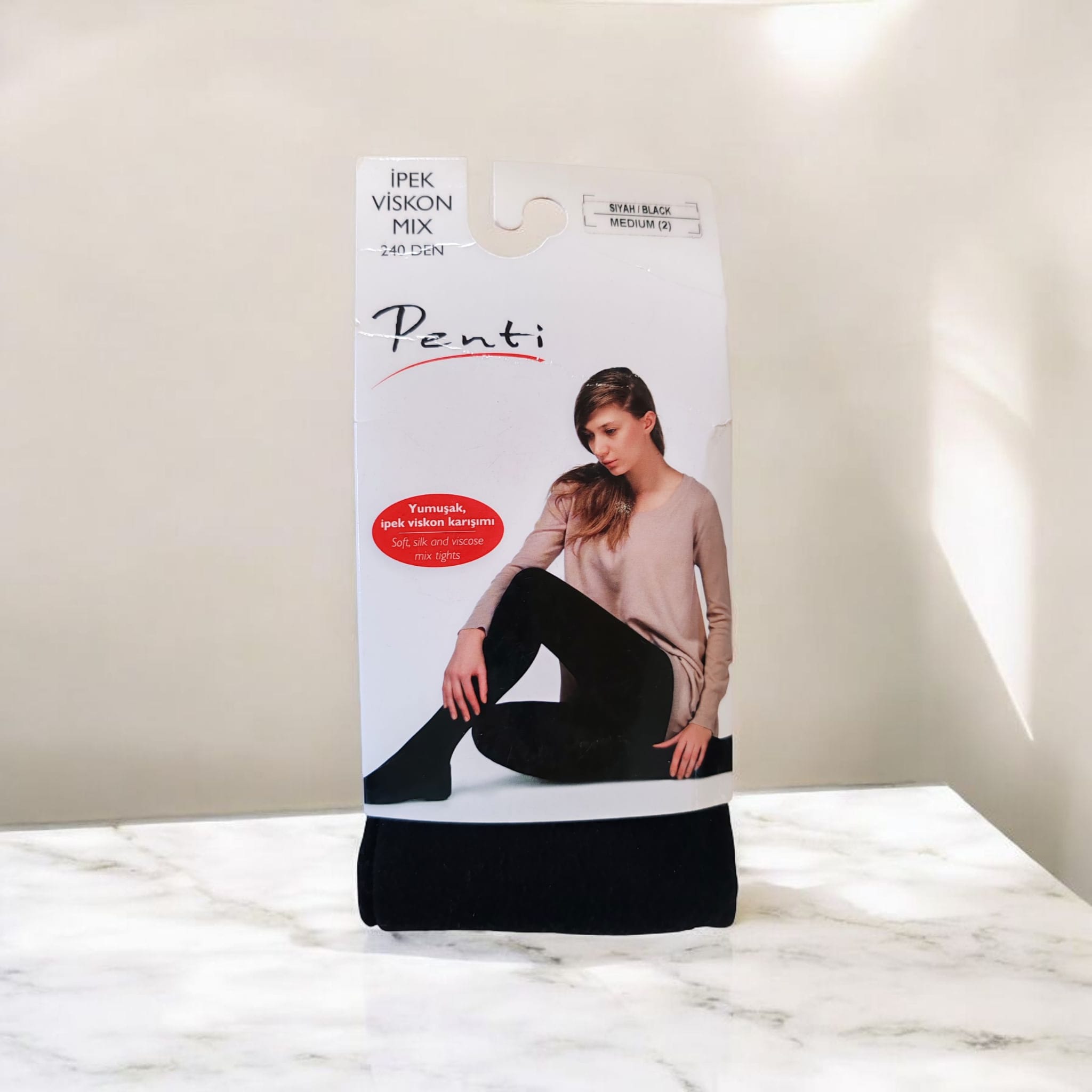 Dresul de damă Penti Ipek Viskon Mix este realizat dintr-un amestec moale de mătase și viscoză, oferind confort și finețe la purtare. Cu densitate de 240 DEN și culoare neagră elegantă, asigură acoperire completă și un aspect rafinat. Disponibil en-gros, perfect pentru comercianți.