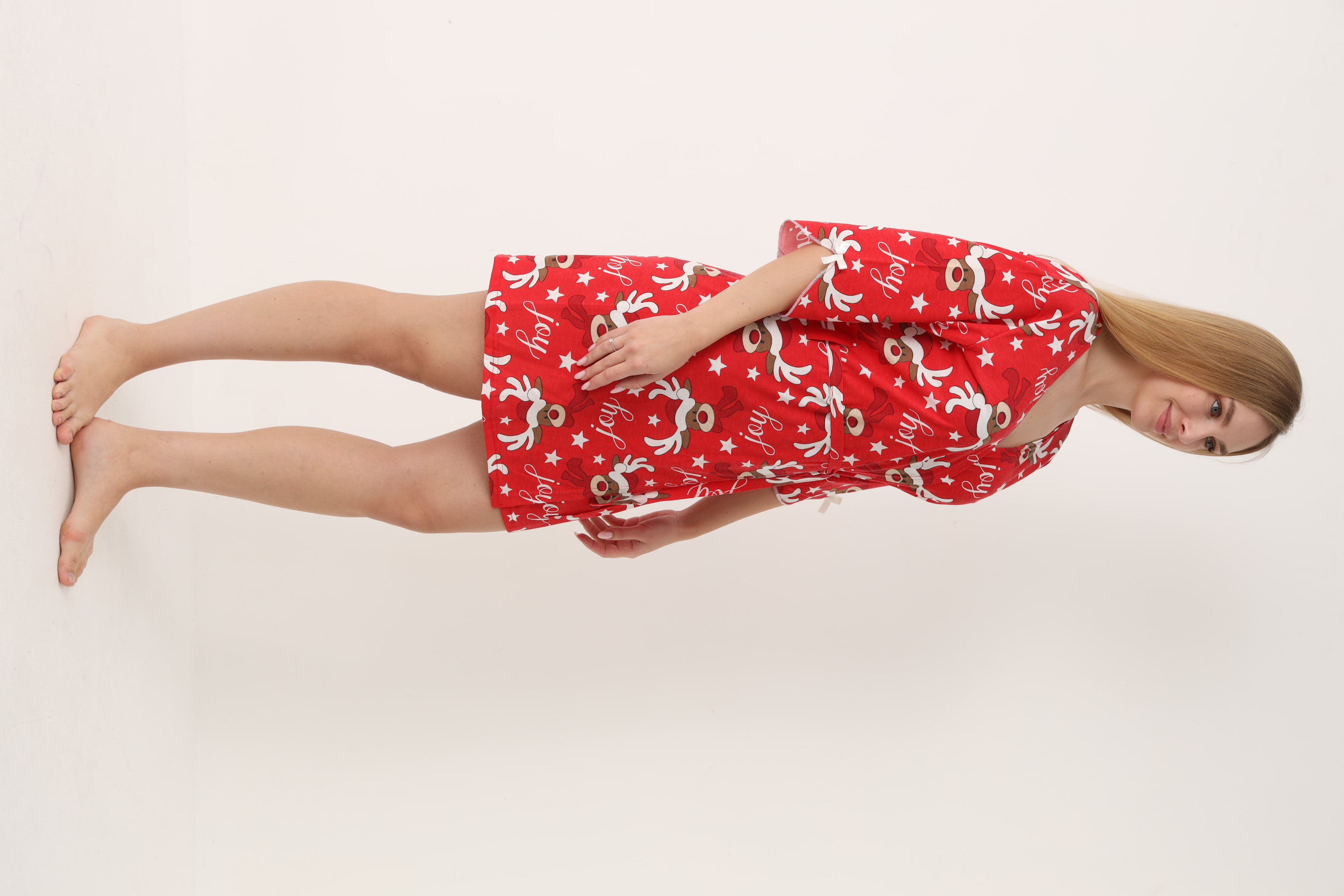 Intră în atmosfera sărbătorilor cu un halat comod și adorabil!Confecționat din material moale și plăcut la atingere, perfect pentru momentele de relaxare acasă.Design festiv cu imprimeu de reni și mâneci 3/4, si cordon in jurul taliei ,ideal pentru diminețile de iarnă și serile de Crăciun în familie.