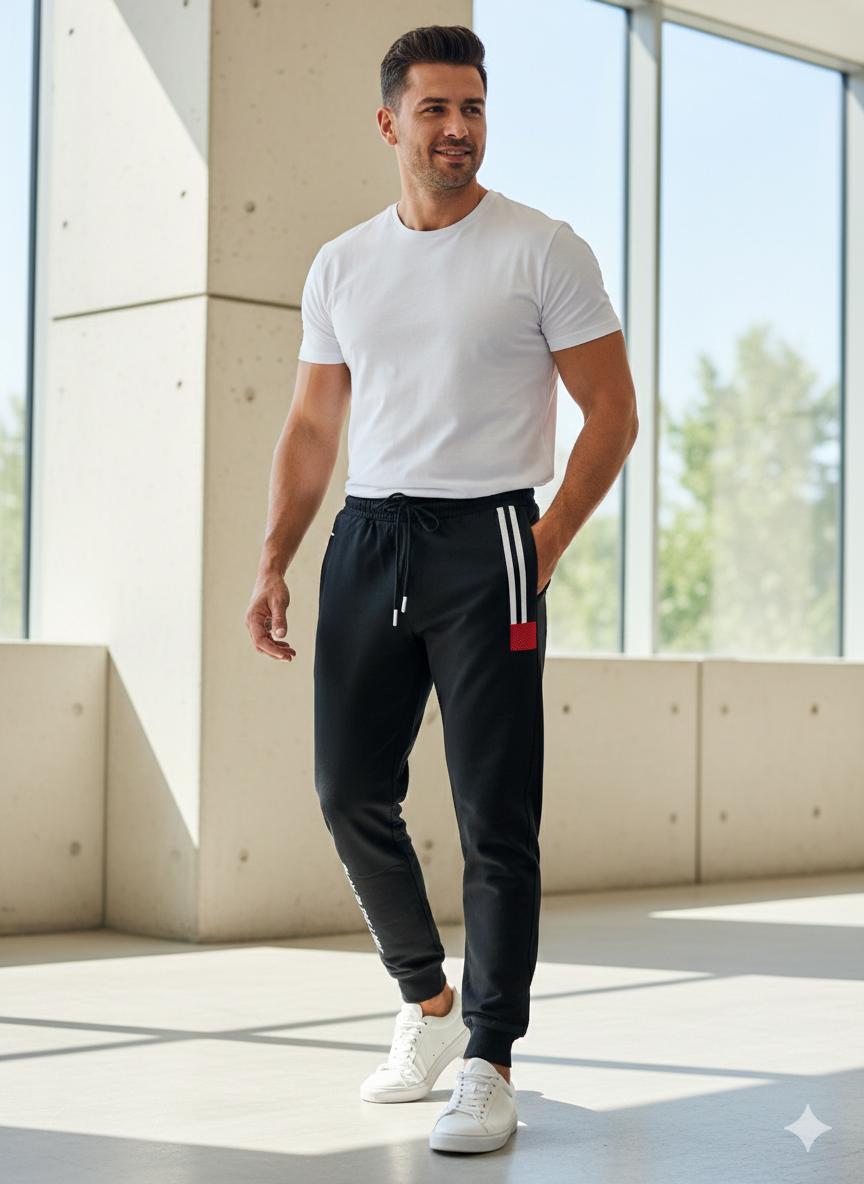 Pantaloni de sport pentru bărbați, concepuți pentru confort și funcționalitate. Realizați din material de calitate, plăcut la atingere, oferă libertate de mișcare și rezistență în timp. Designul modern este completat de talia elastică cu șnur reglabil și buzunare practice.