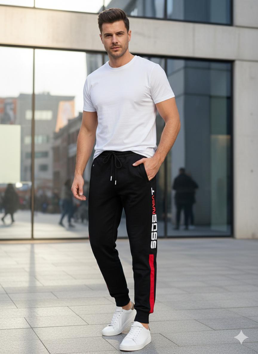 Pantaloni de sport pentru bărbați, concepuți pentru confort și funcționalitate. Realizați din material de calitate, plăcut la atingere, oferă libertate de mișcare și rezistență în timp. Designul modern este completat de talia elastică cu șnur reglabil și buzunare practice.