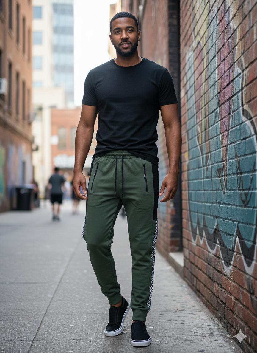 Pantaloni sport cu design modern, ideali pentru ținute casual sau activități de zi cu zi. Confecționați din material moale și confortabil, oferă libertate de mișcare și un aspect actual. Prevăzuți cu buzunare funcționale cu fermoar și manșete elastice la gleznă pentru un look sportiv bine definit.