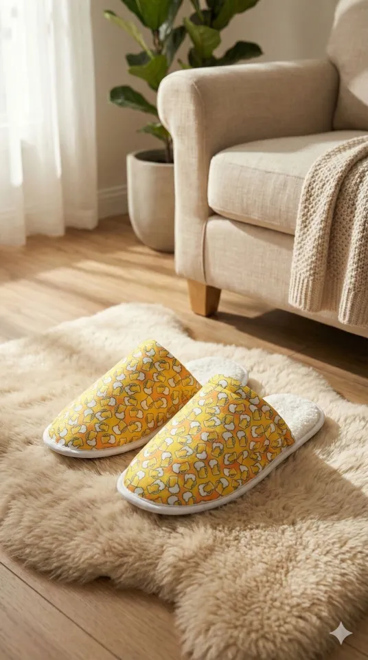 Papuci de casă pentru bărbați, galbeni, cu imprimeu halbă de bere ,En-gros