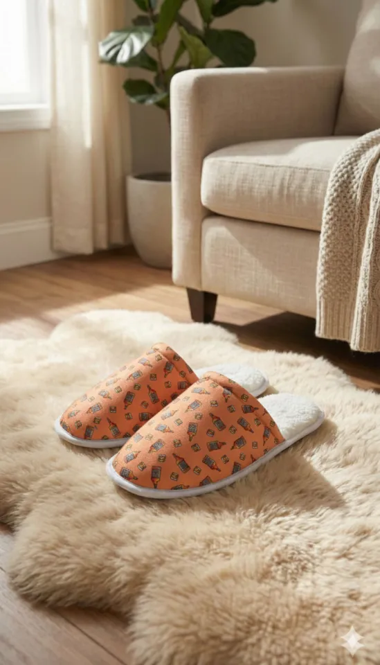 Papuci de casă pentru bărbați, portocalii, cu imprimeu Whiskey ,En-gros