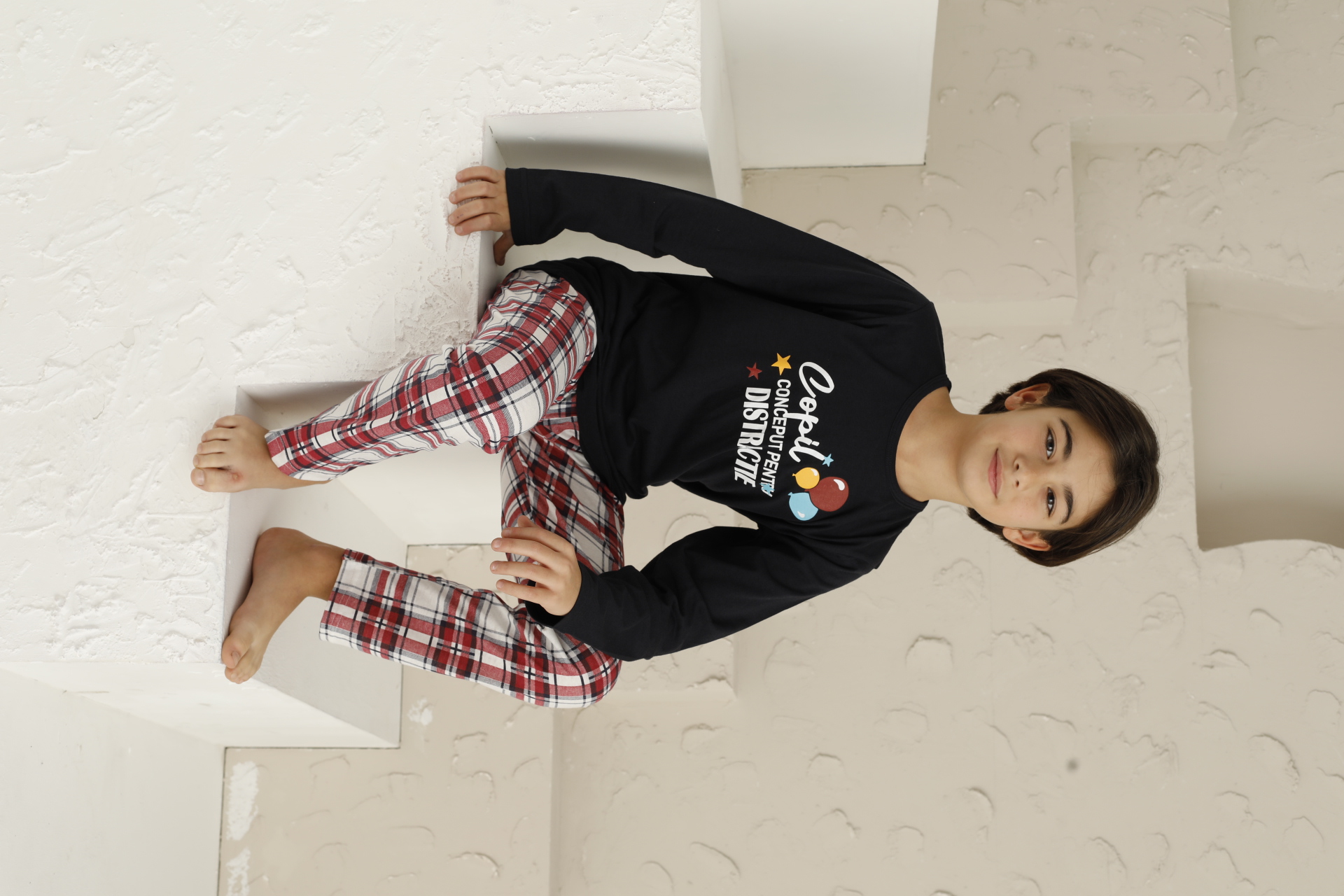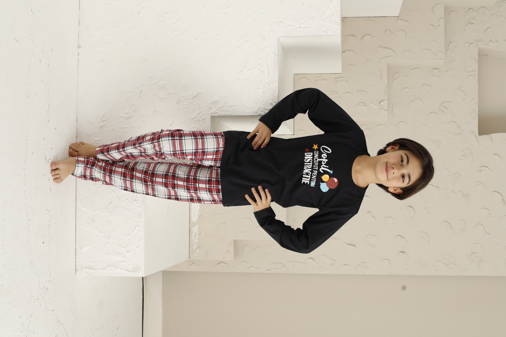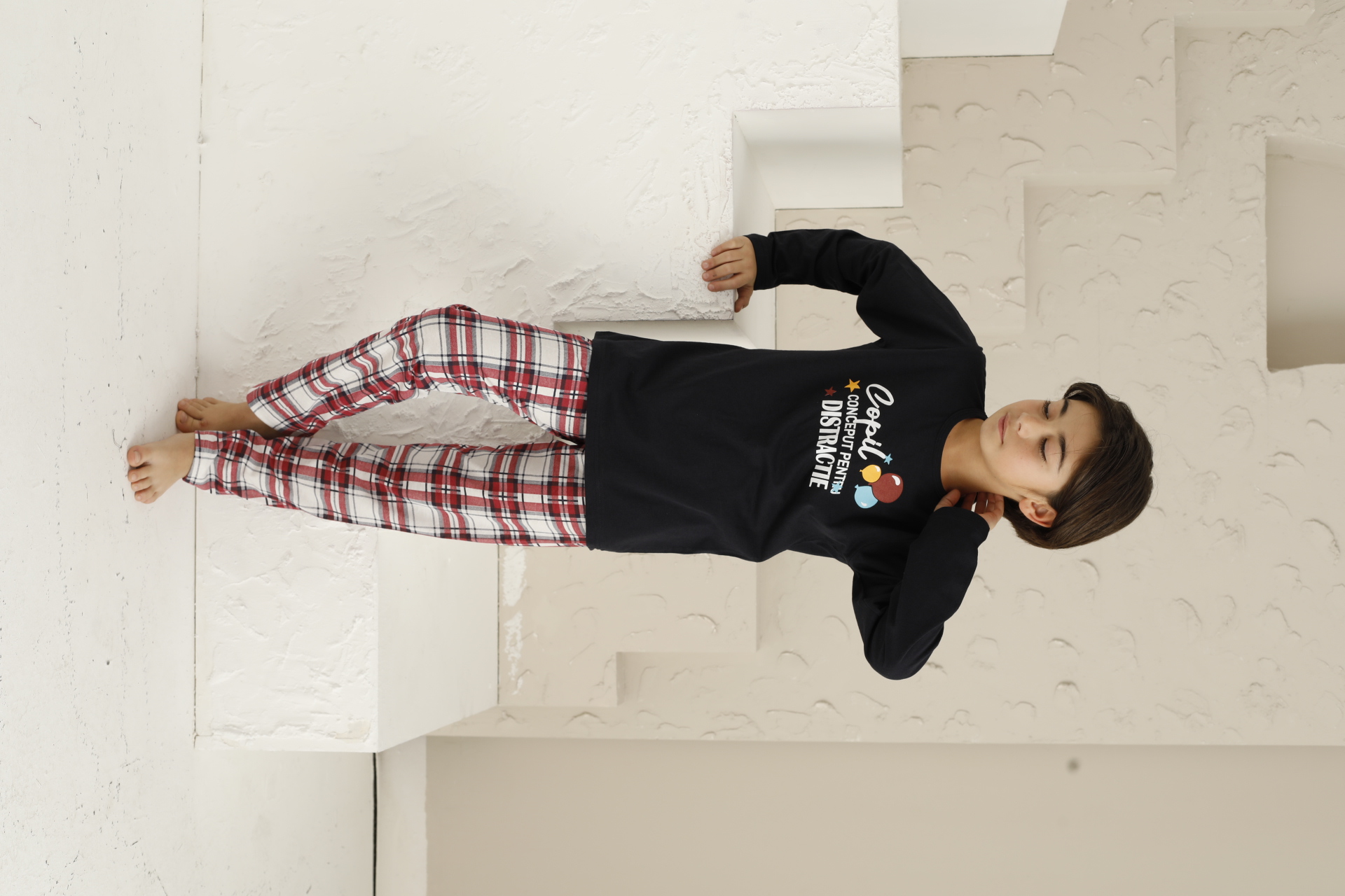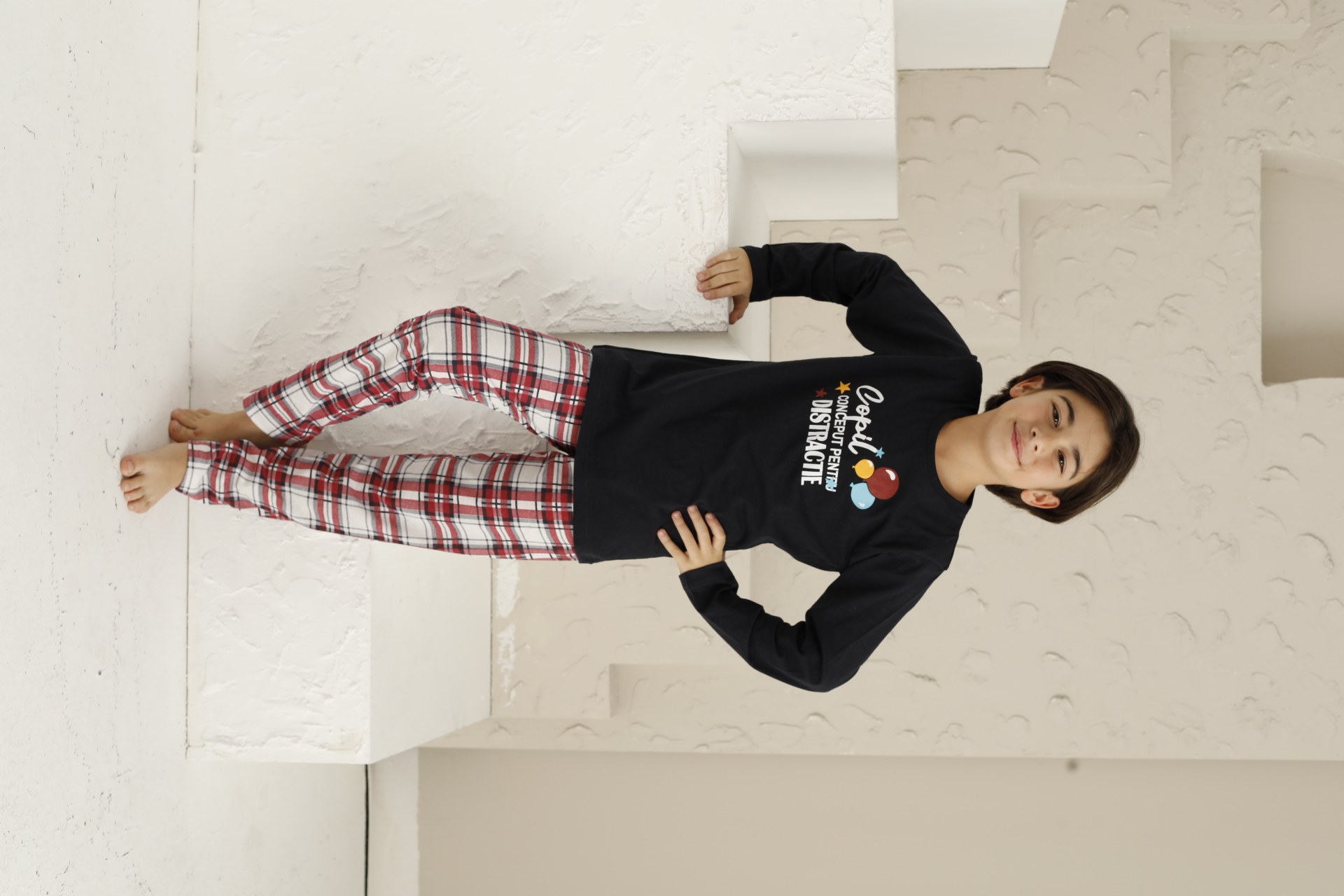 Pijama Băieți cu Maneca Lungă și Pantaloni Lungi, model ,,Copil Conceput Pentru Distractie''Culoare Negru,Engros