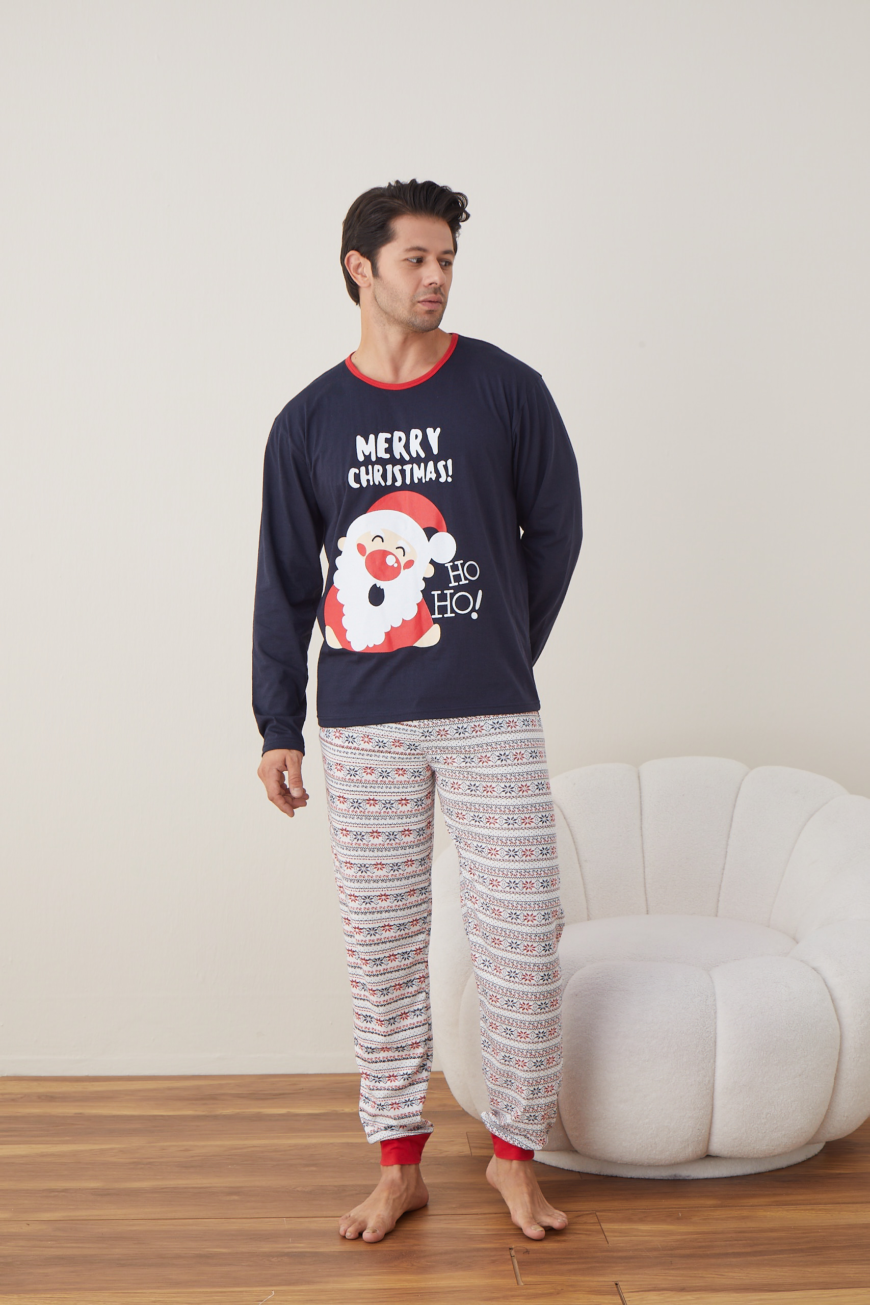Pijama bărbătească de Crăciun, ideală pentru serile reci de iarnă. Setul include bluză cu mânecă lungă și pantaloni lungi. Materialul moale și plăcut la atingere oferă confort maxim, fiind potrivit atât pentru purtare zilnică, cât și ca idee de cadou de sărbători. Disponibil en-gros.