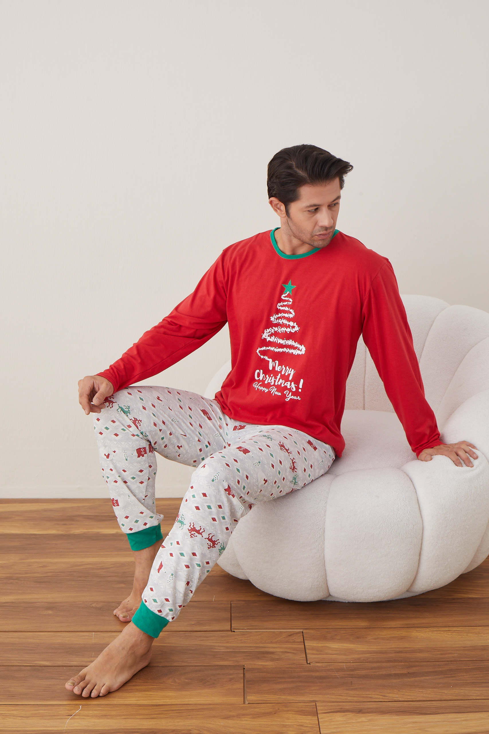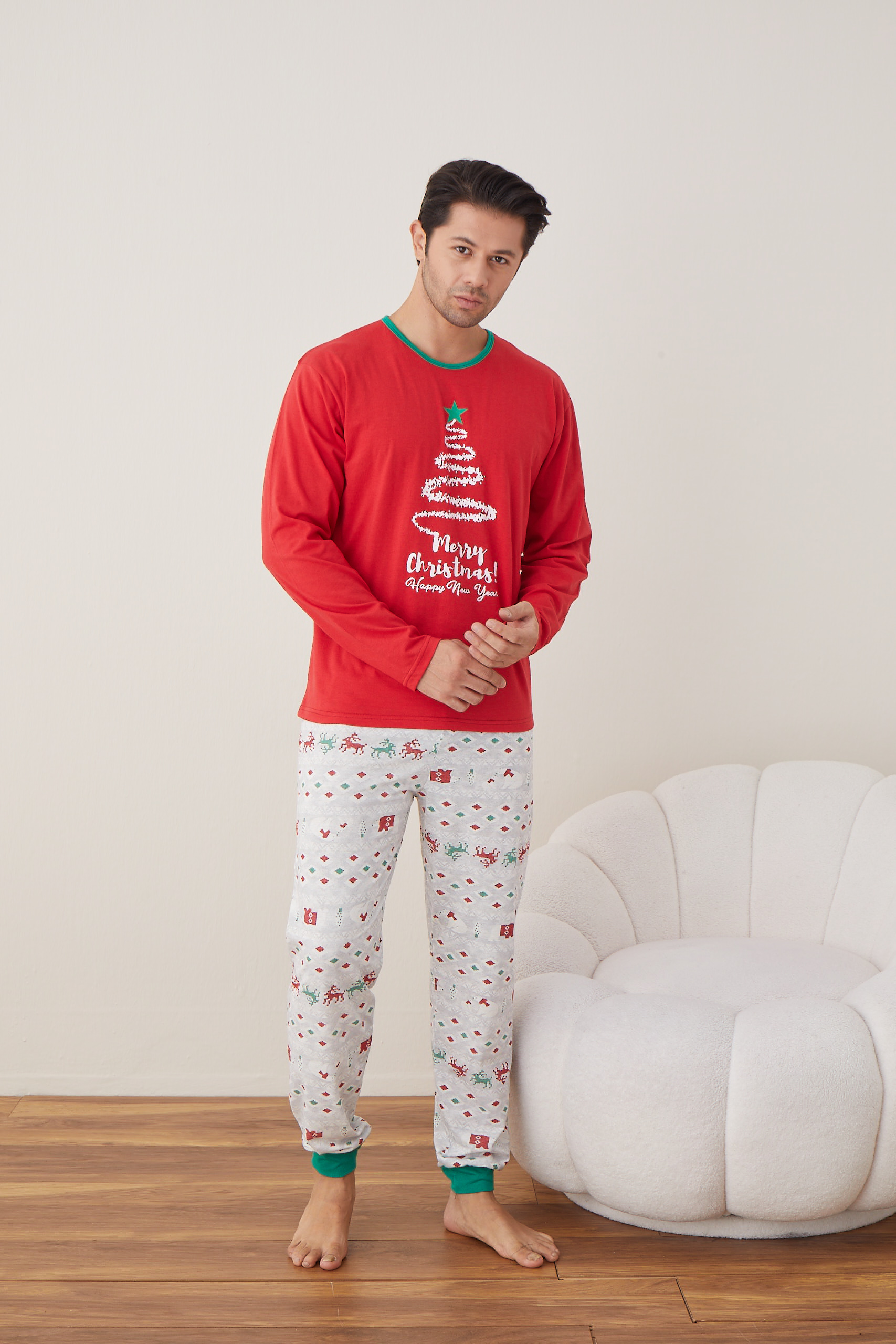 Pijama bărbătească de Crăciun, ideală pentru serile reci de iarnă. Setul include bluză cu mânecă lungă și pantaloni lungi. Materialul moale și plăcut la atingere oferă confort maxim, fiind potrivit atât pentru purtare zilnică, cât și ca idee de cadou de sărbători. Disponibil en-gros.