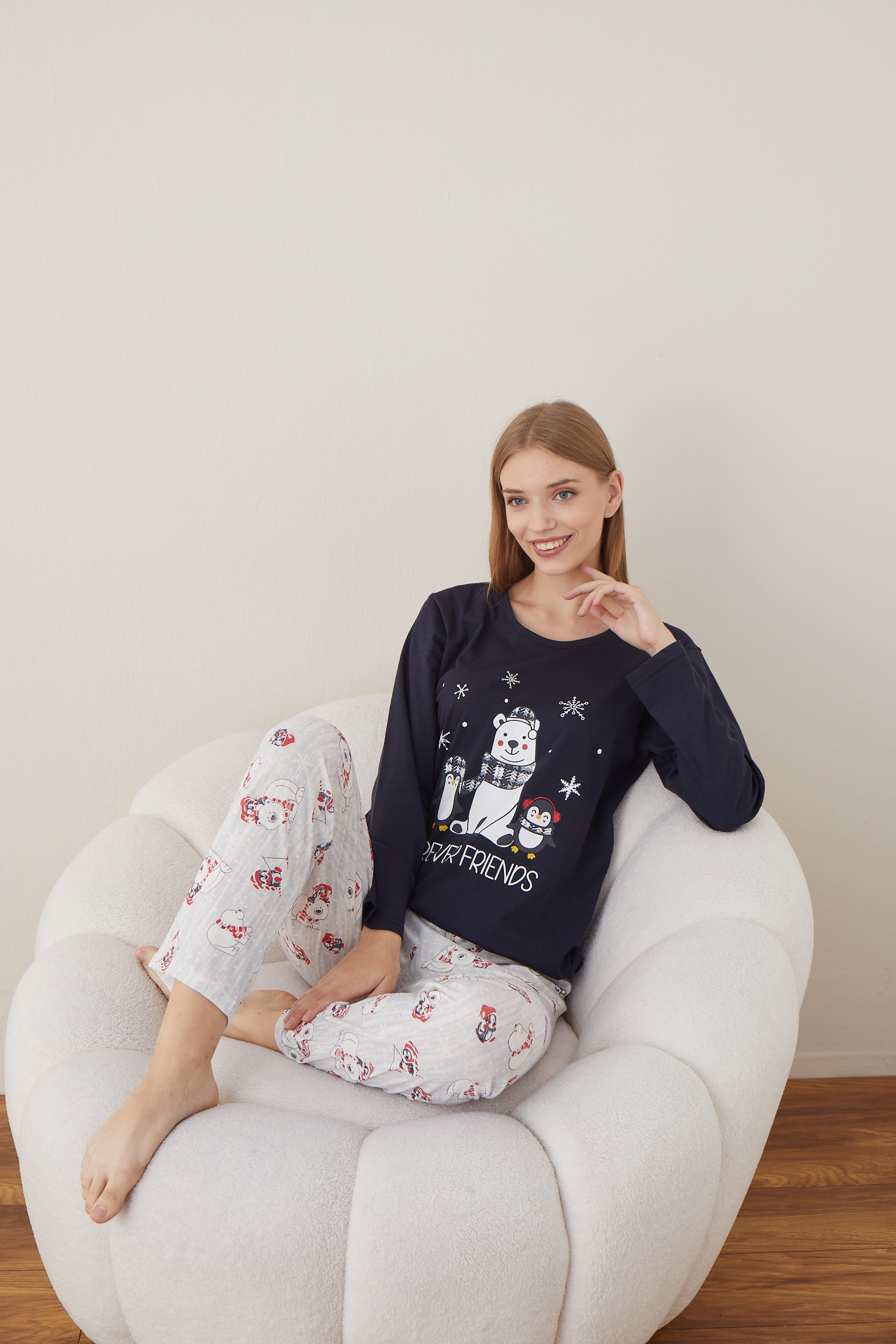 Pijama dama Craciun este alegerea perfectă pentru nopțile reci sau serile de relaxare acasă. Setul include bluză cu mânecă lungă și pantaloni lungi. Materialul moale și plăcut la atingere oferă confort maxim, fiind potrivit atât pentru purtare zilnică, cât și ca idee de cadou de sărbători.