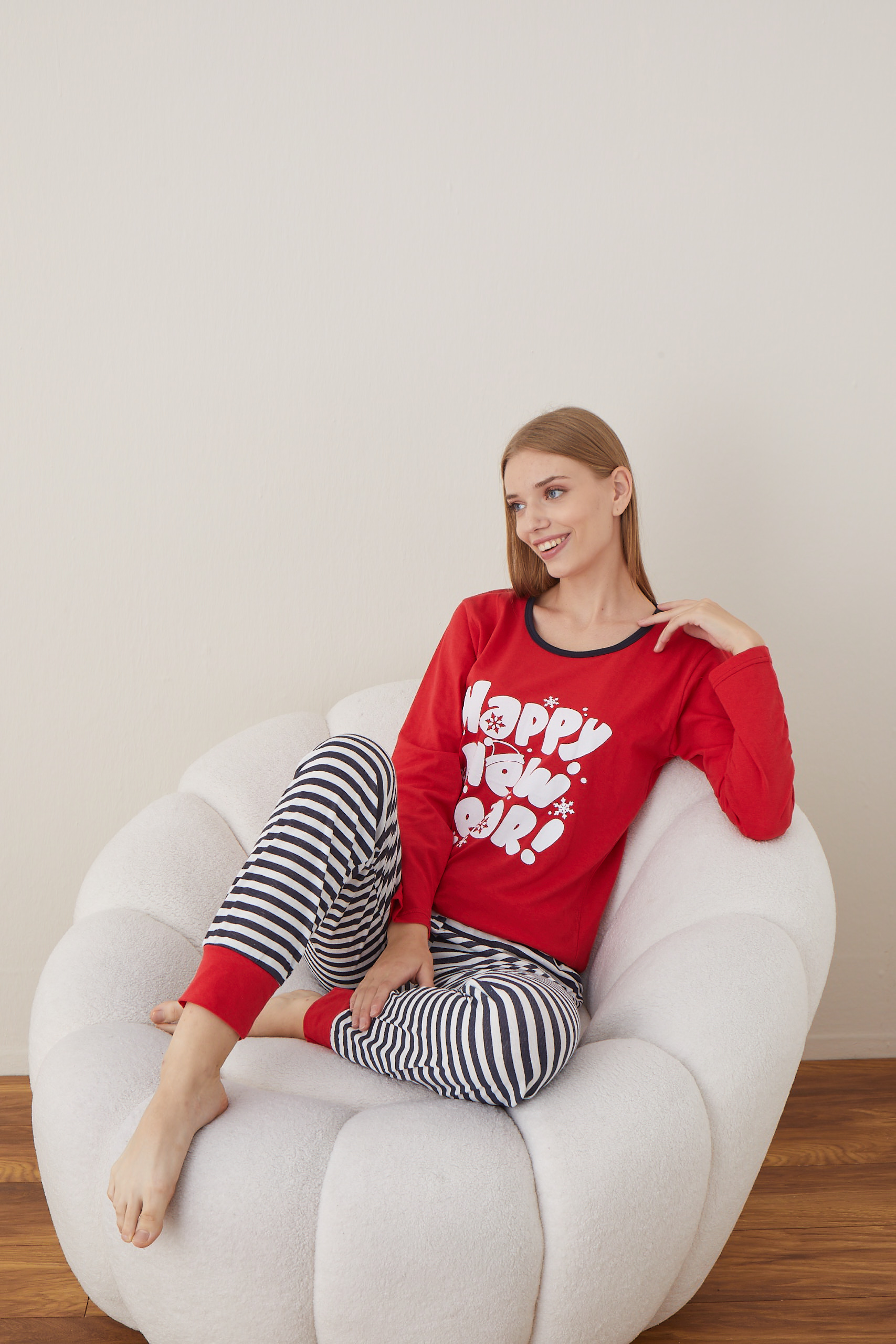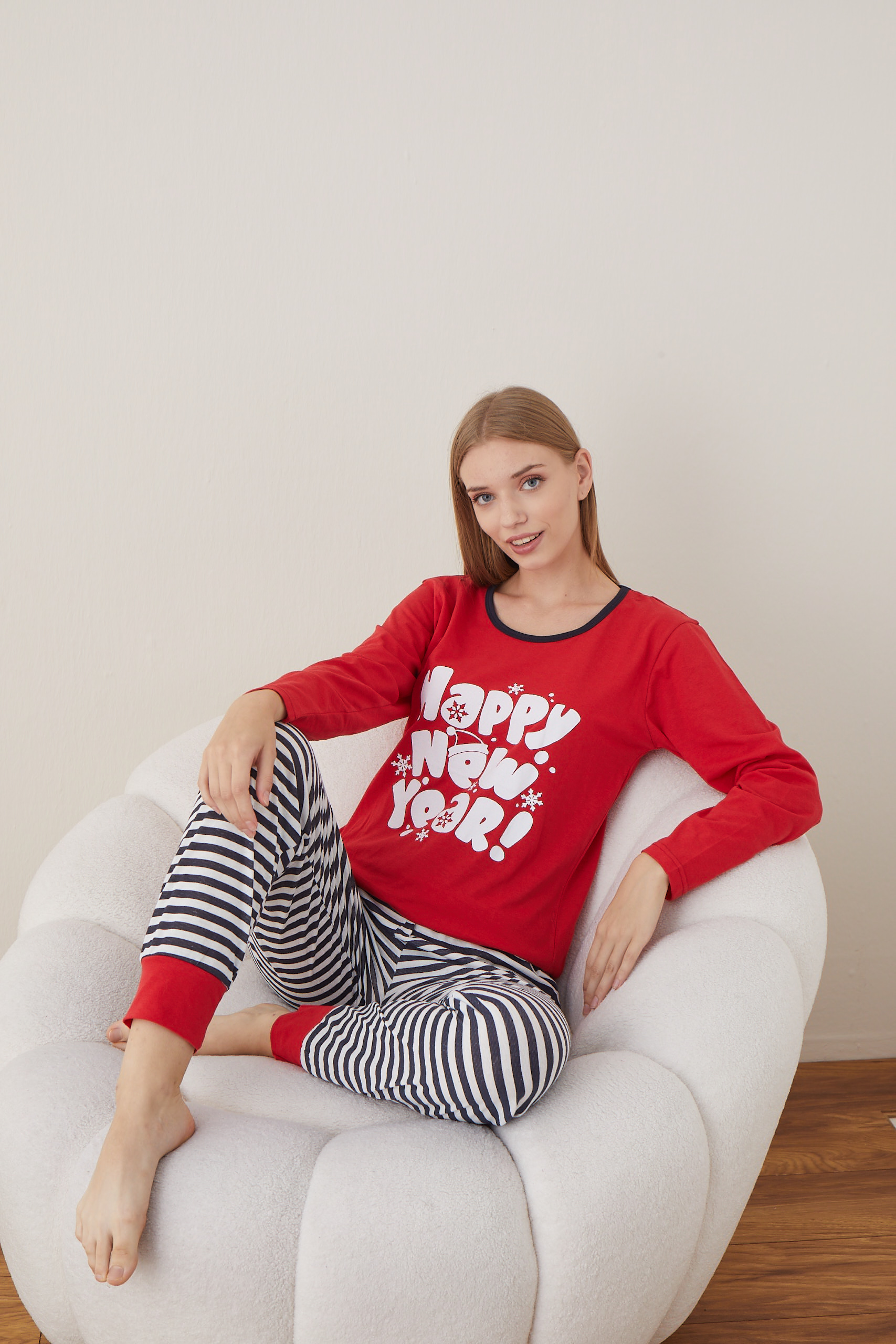 Pijama Dama Craciun "HAPPY NEW YEAR " ,maneca lunga ,pantaloni lungi,Engros