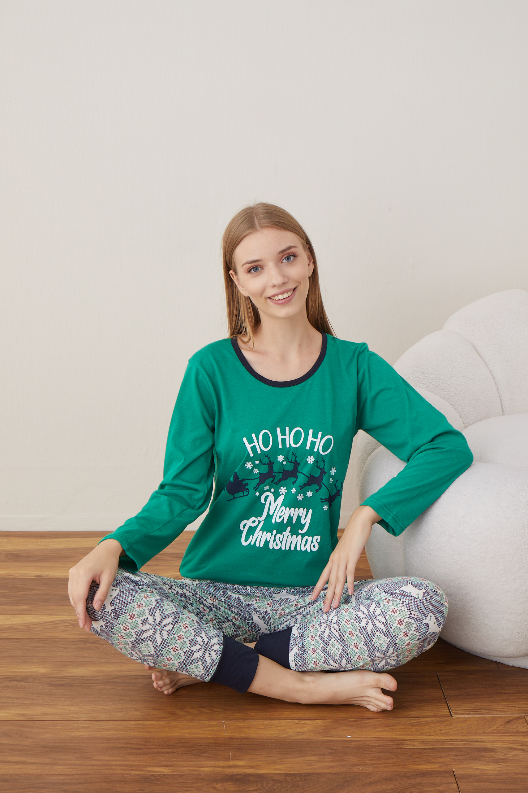 Pijama Dama Craciun " HO HO HO" ,maneca lunga ,pantaloni lungi,Engros