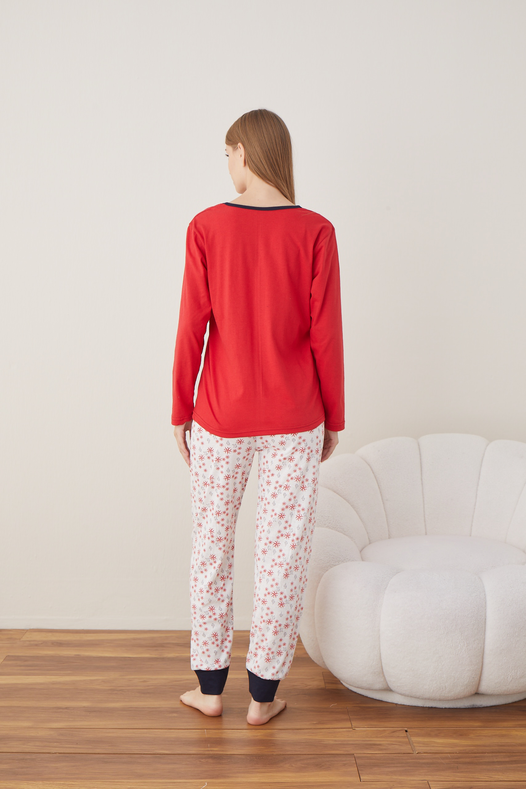 Pijama  dama Craciun  este alegerea perfectă pentru nopțile reci sau serile de relaxare acasă.   Setul include bluză cu mânecă lungă și pantaloni lungi. Materialul moale și plăcut la atingere oferă confort maxim, fiind potrivit atât pentru purtare zilnică, cât și ca idee de cadou de sărbători.