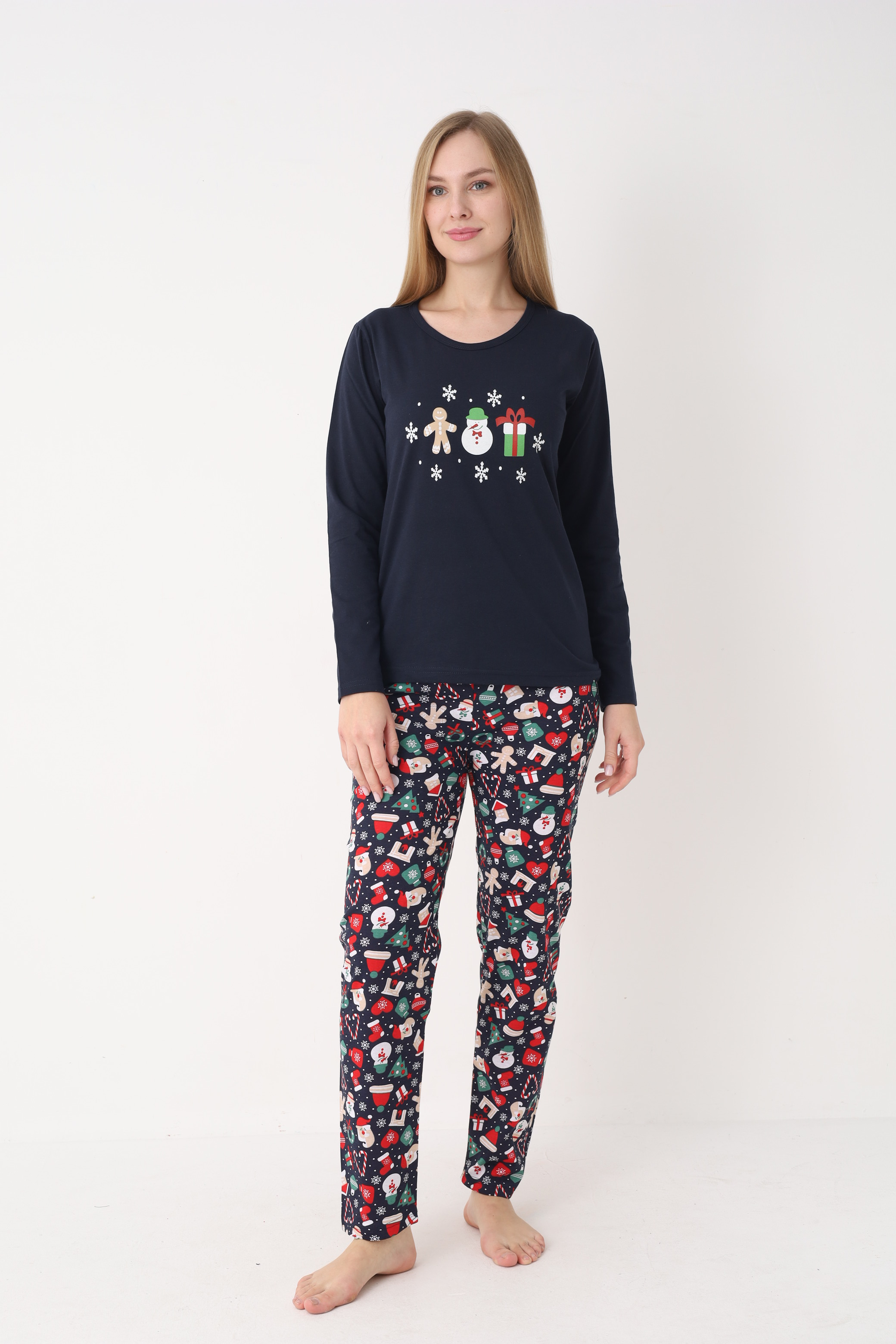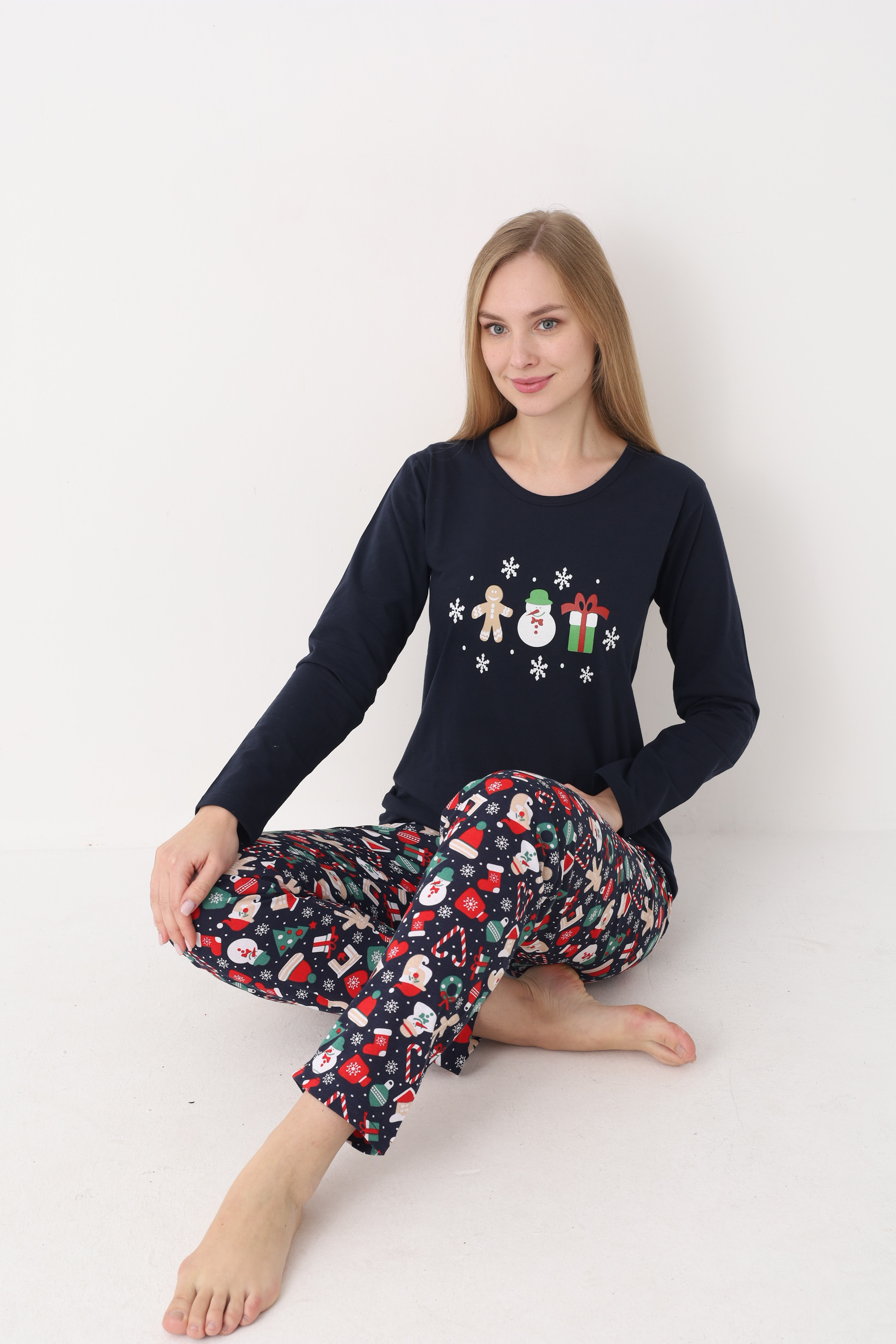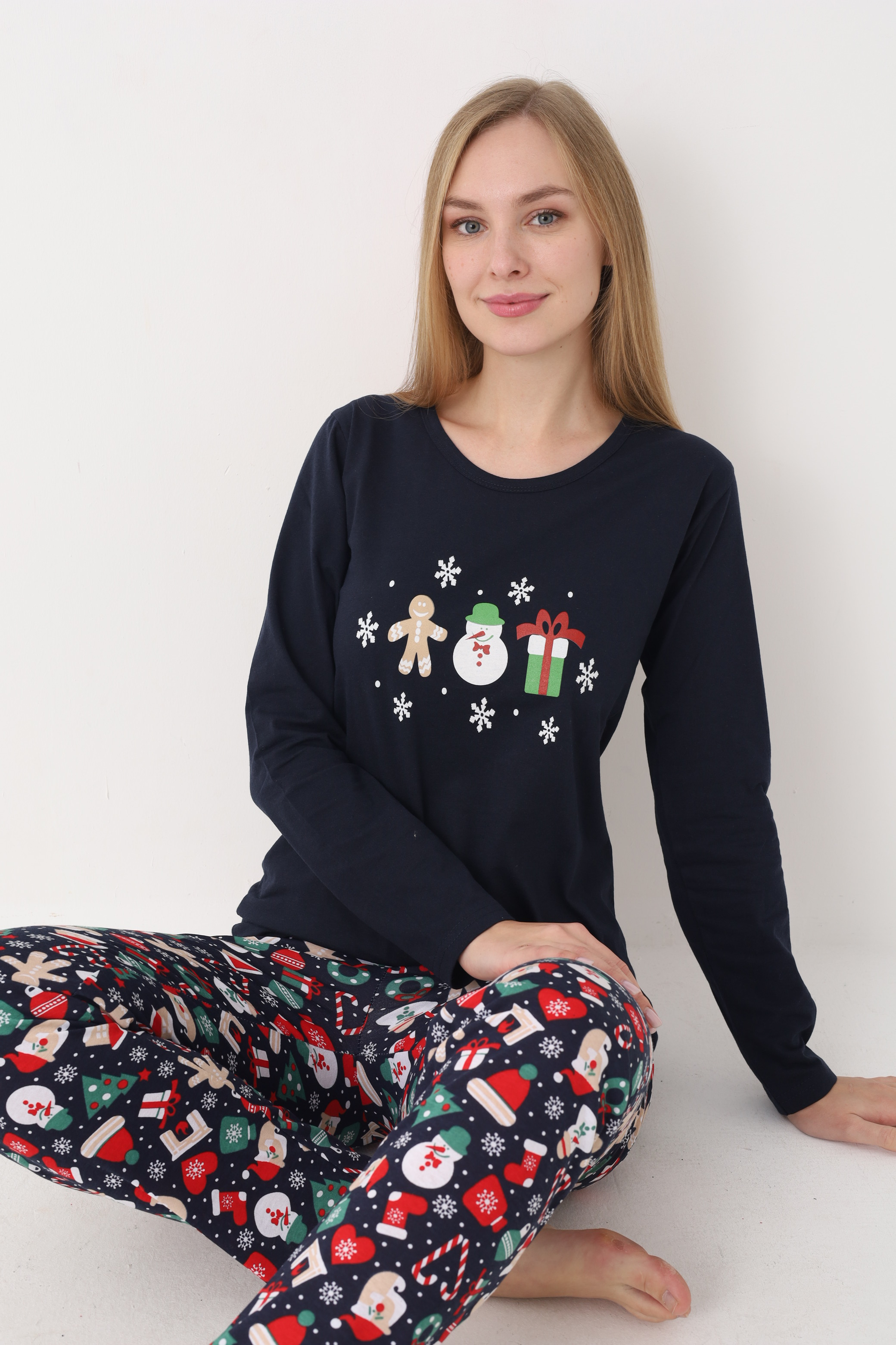 Pijama dama Craciun,maneca lunga si pantaloni lungi,imprimeu figurine festive, En-gros