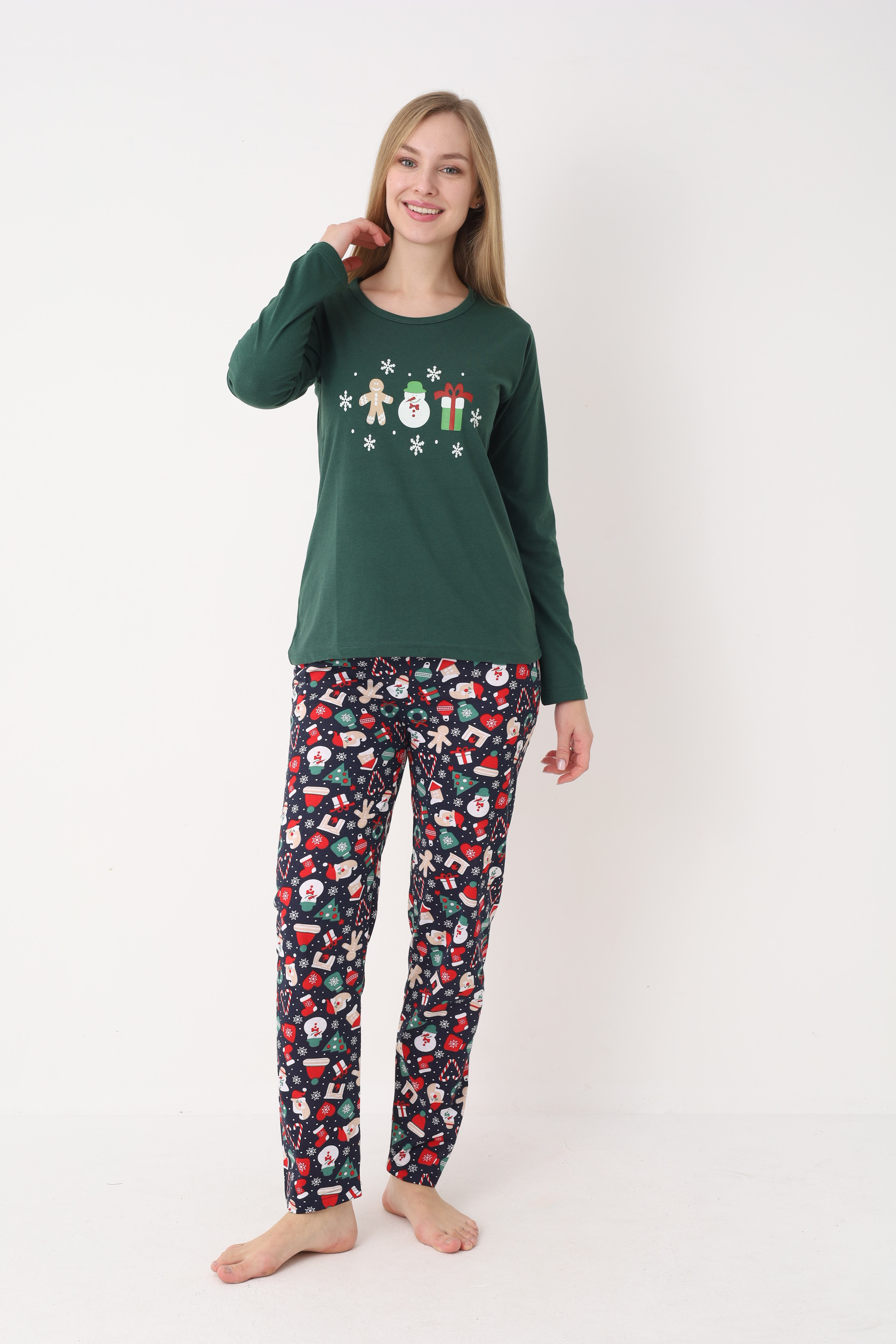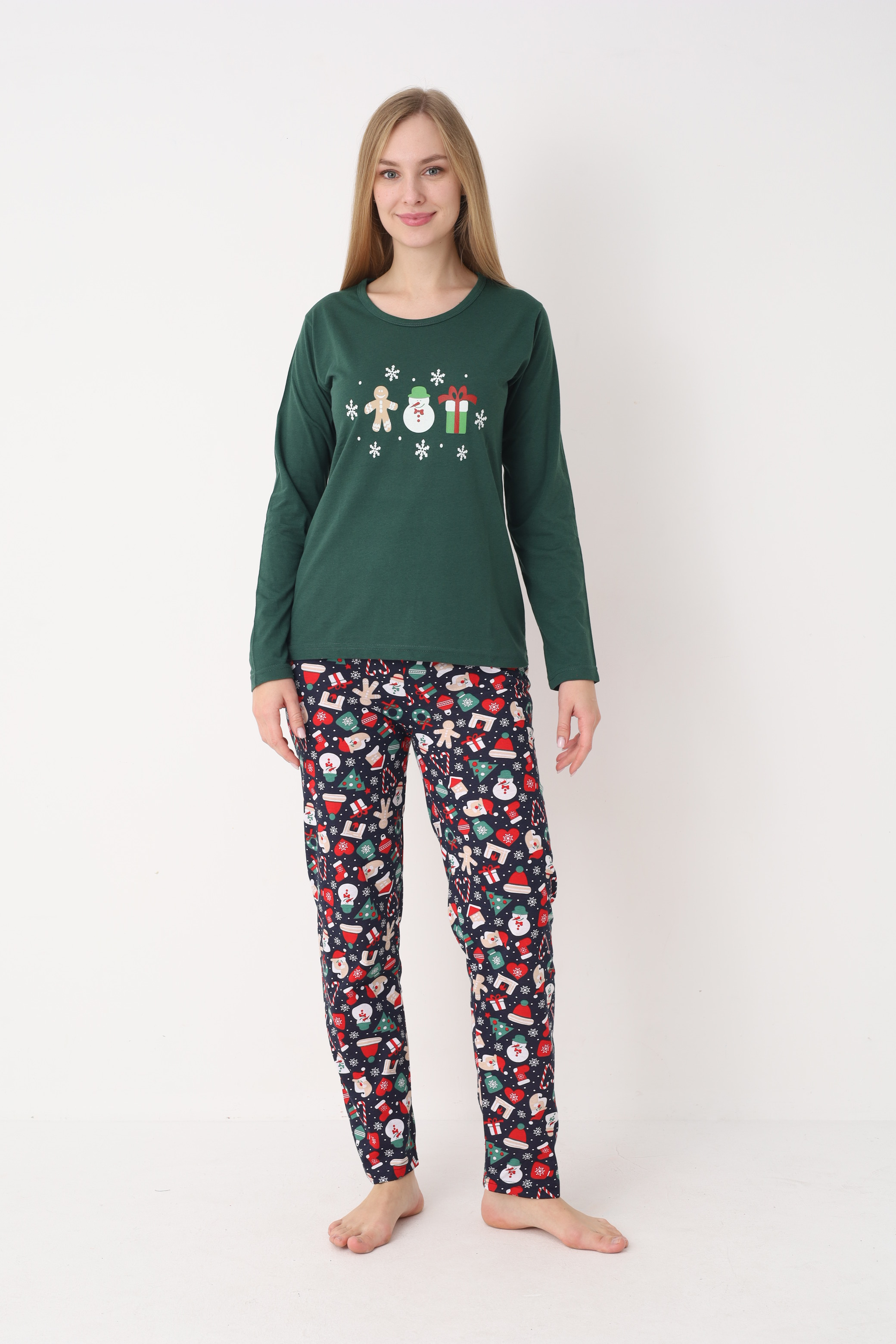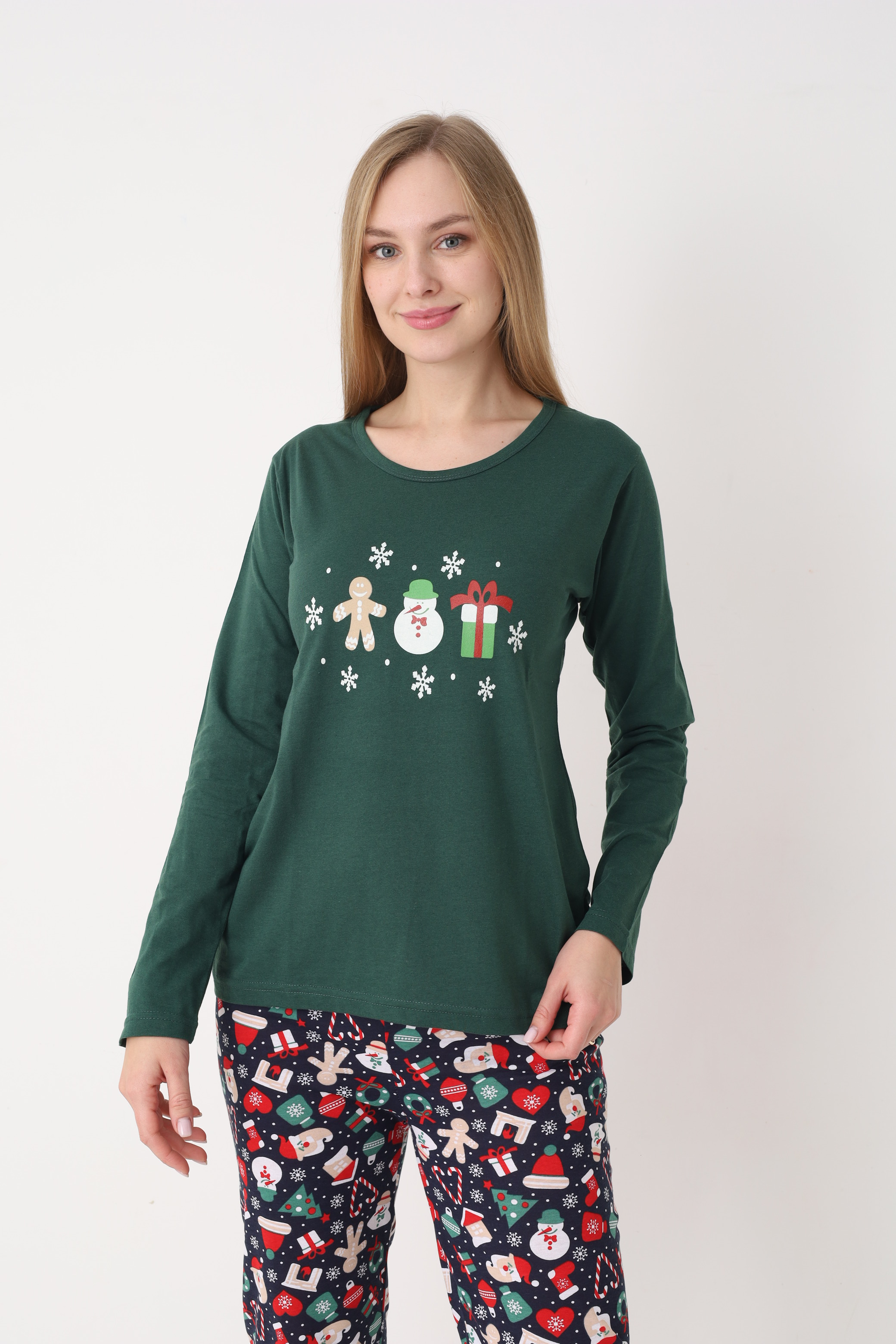 Pijama dama Craciun,maneca lunga si pantaloni lungi,imprimeu figurine festive, En-gros