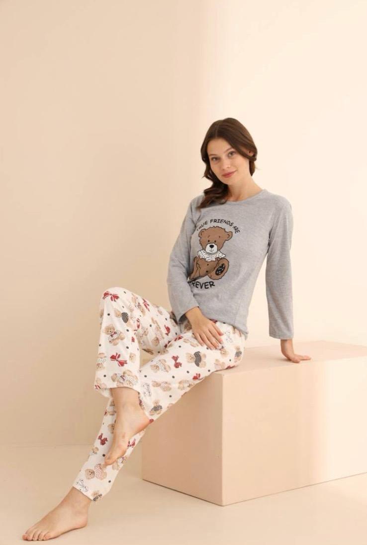 Răsfață-te cu cea mai adorabilă pijama! Modelul Suprem în culoarea gri, cu imprimeu simpatic de ursuleț, este alegerea ideală pentru serile reci și momentele de relaxare. Confortabilă și plăcută la atingere, această pijama îmbină perfect căldura, stilul și lejeritatea.