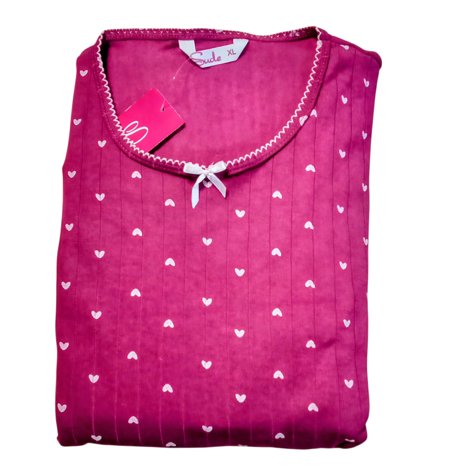 Această pijama pentru damă este concepută pentru a oferi confort termic superior și libertate de mișcare în sezonul rece. Realizată din material vătuit, moale și călduros, asigură un plus de confort în timpul nopților răcoroase.