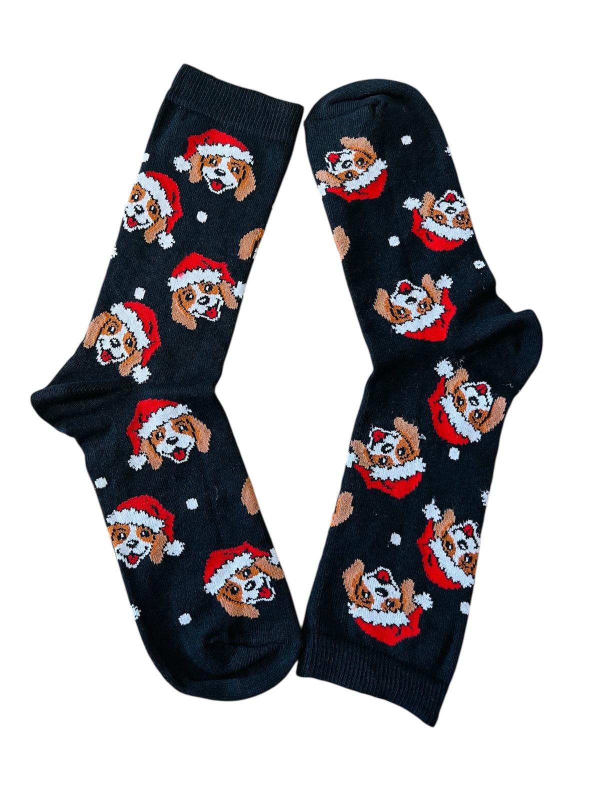 Adaugă o notă veselă și adorabilă ținutelor tale de iarnă cu aceste șosete damă.Decorate cu simpatici cățeluși purtând căciuli de Moș Crăciun! Perfecte pentru sezonul festiv, aceste șosete combină confortul cu un design jucăuș care sigur va aduce zâmbete.Ideal pentru tine sau ca un cadou simpatic pentru o prietenă, colegă sau persoană dragă în perioada sărbătorilor.