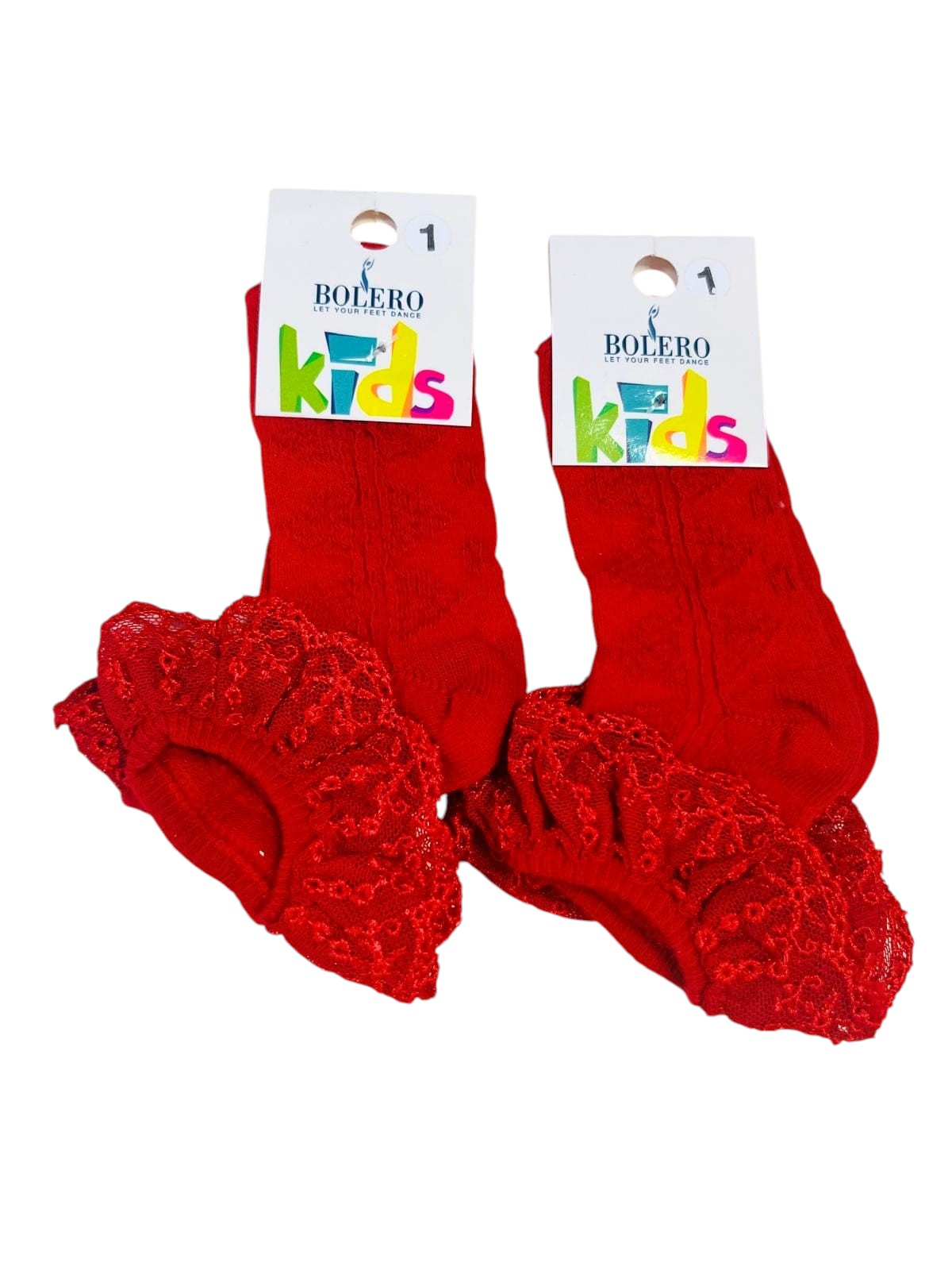 Sosete fetite cu Broderie,Culoare Rosu,Engros
