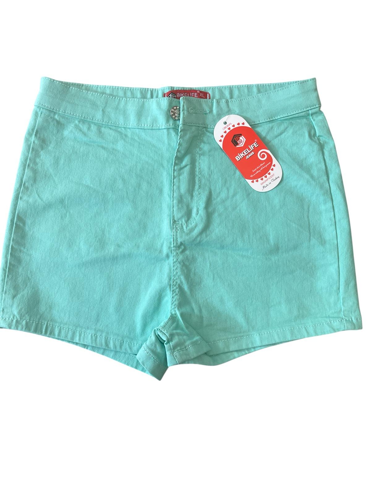 Blugi scurți damă de vară – elastici, mulați, cu buzunare la spate, verde deschis, Engros