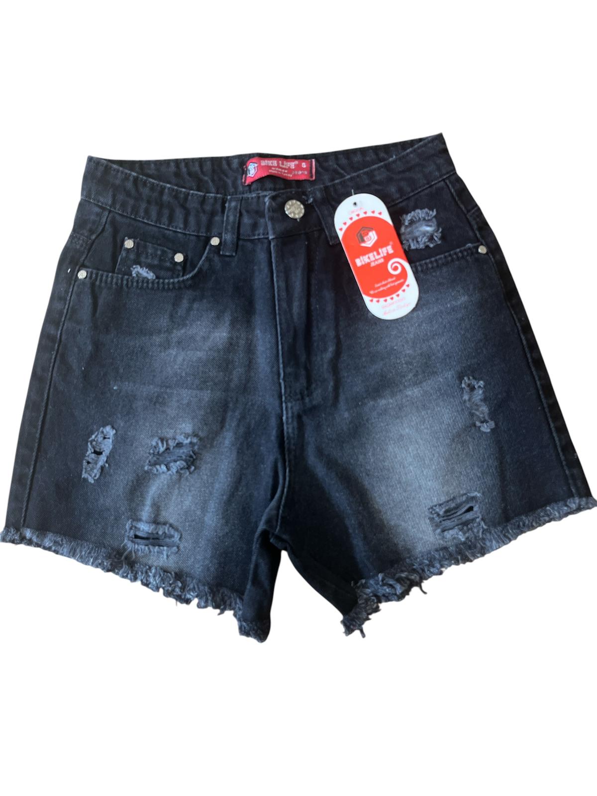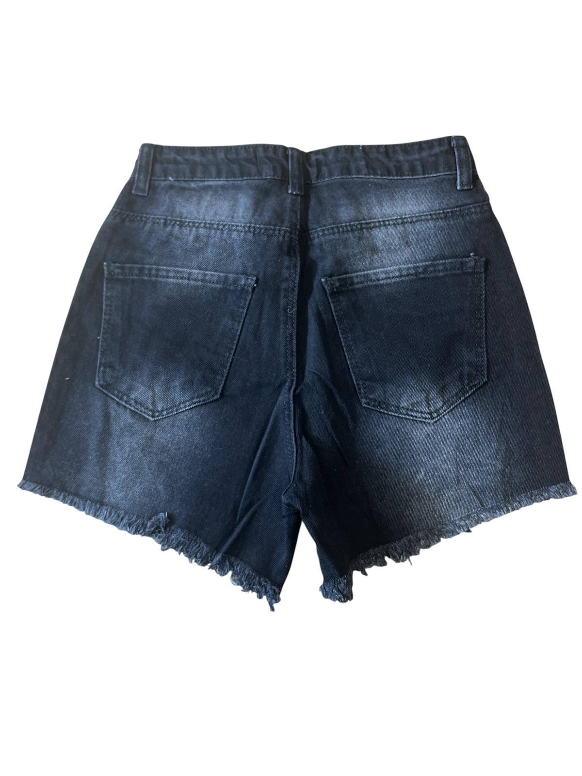 Blugi scurti dama,negri, cu talie înaltă, model rupt cu franjuri, buzunare funcționale și croială lejeră – ideali pentru un look casual și urban.