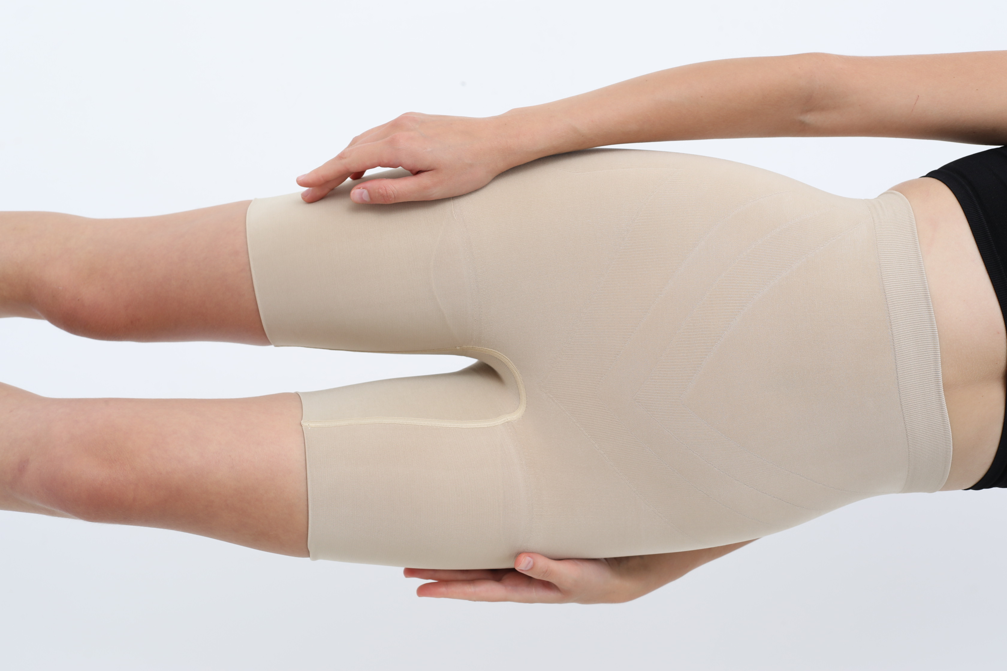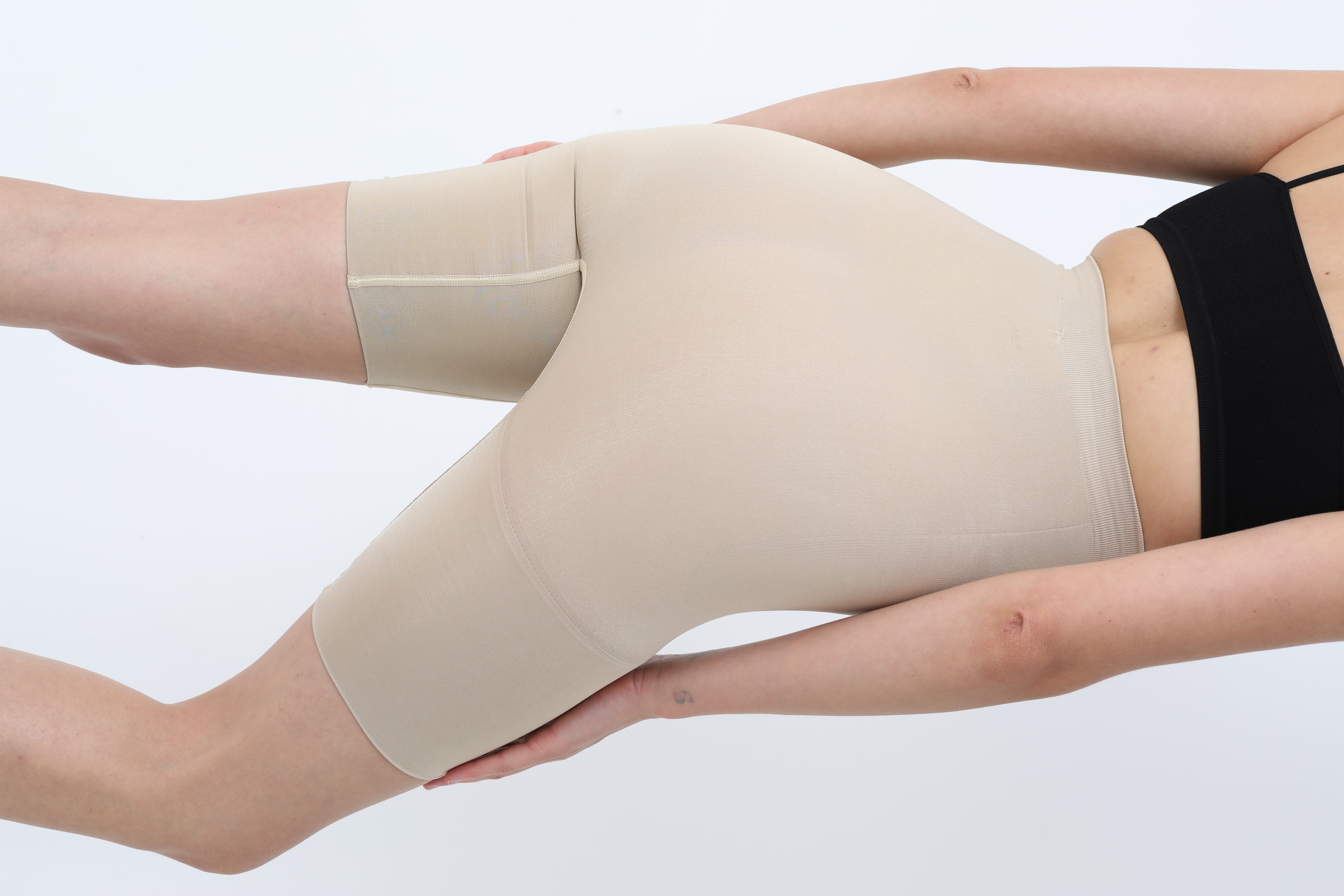 Pantaloni modelatori scurți, cu talie înaltă, realizați din material moale și elastic .Oferă susținere ușoară în zona abdomenului și coapselor, cu efect de uniformizare a siluetei.