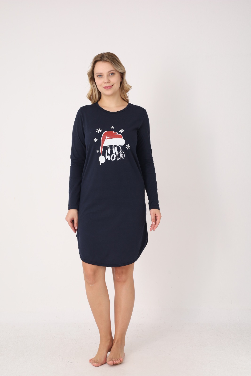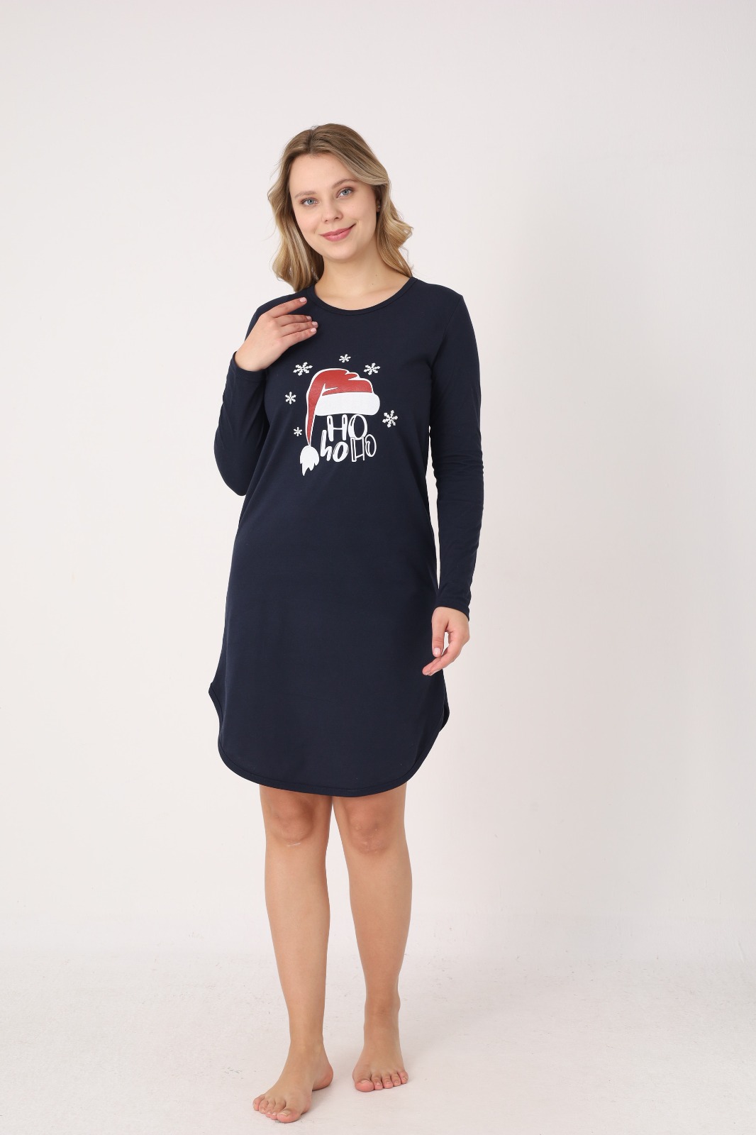 Adaugă un strop de magie sărbătorilor cu această cămașă de noapte festivă pentru damă. Realizată din material moale și plăcut la atingere, oferă confort sporit pe durata nopții și momente relaxante acasă. Croiala lejeră și mânecile lungi asigură libertate de mișcare, iar decolteul rotund adaugă un plus de stil. Ideală pentru serile de iarnă sau ca idee de cadou pentru cei dragi.