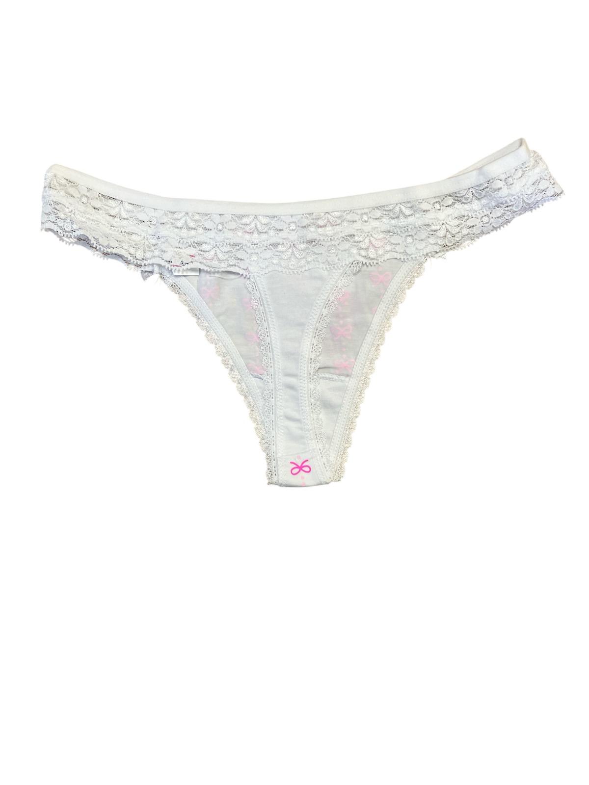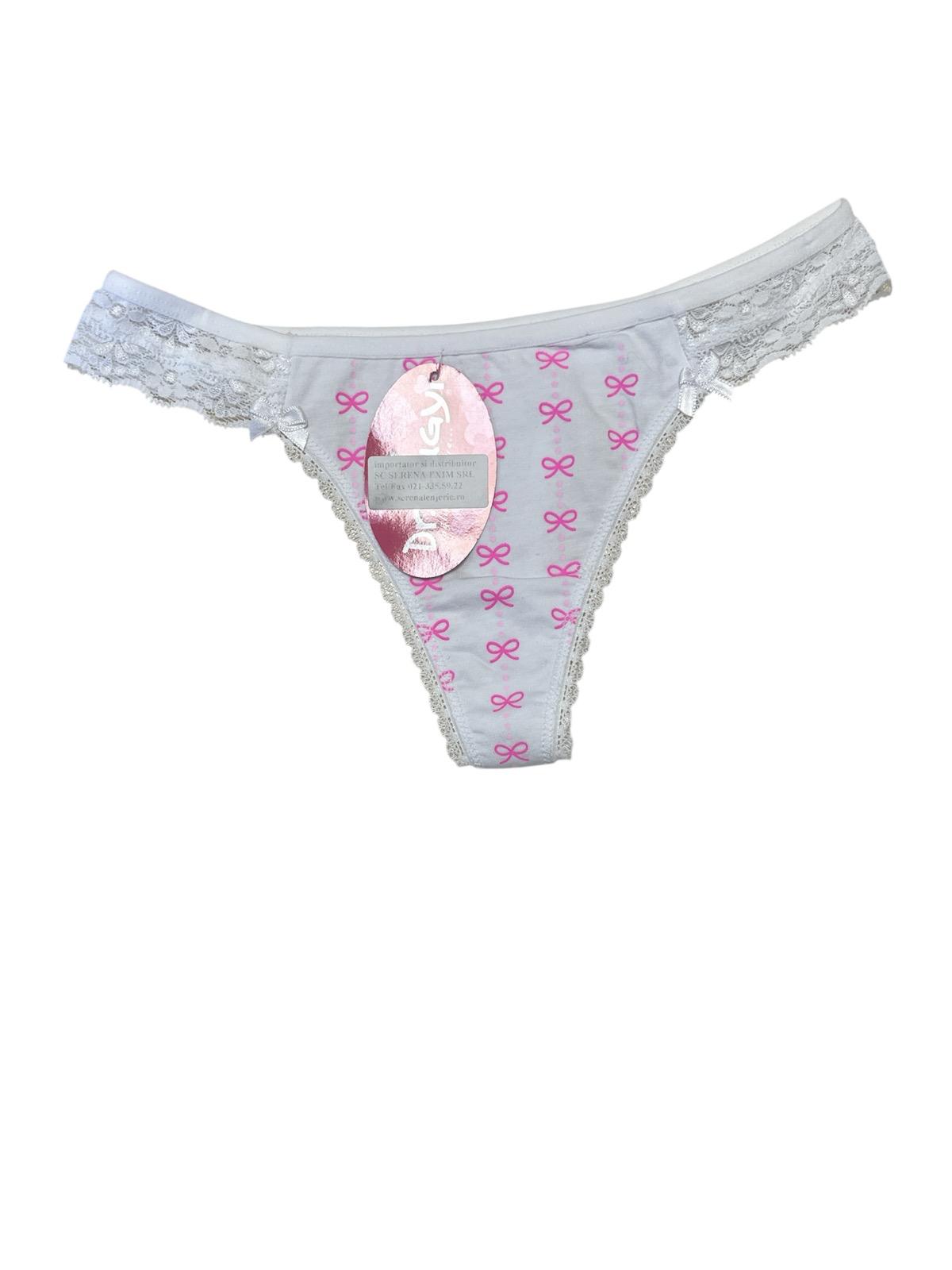 Chiloti Dama, Tanga , Dantelă Alba cu Imprimeu Fundițe Roz, Engros