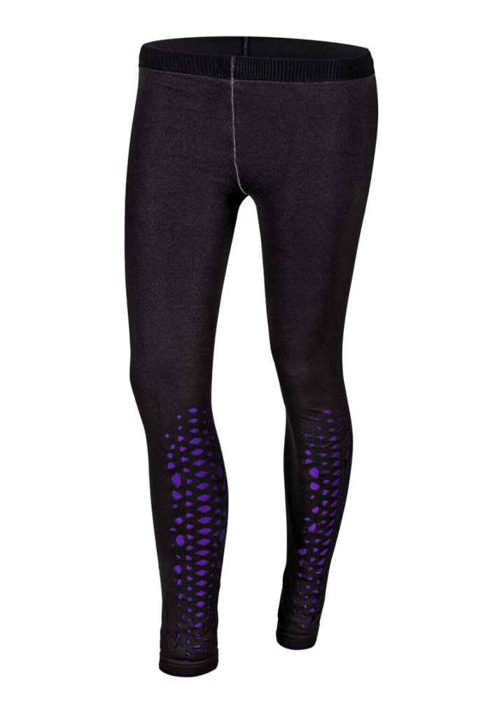 Colanți sport Penti, model dublu, în nuanțe mov neon și negru, cu decupaje moderne tip plasă în formă de romburi. Material elastic, potrivit pentru sală și activități intense.