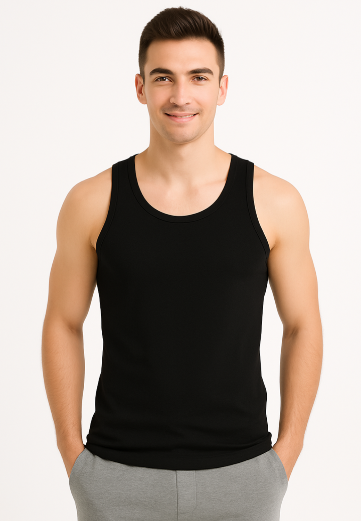 Tip produs: Maiou bărbați, Material: 100% bumbac, Culoare: Negru, Croială: clasică, lejeră