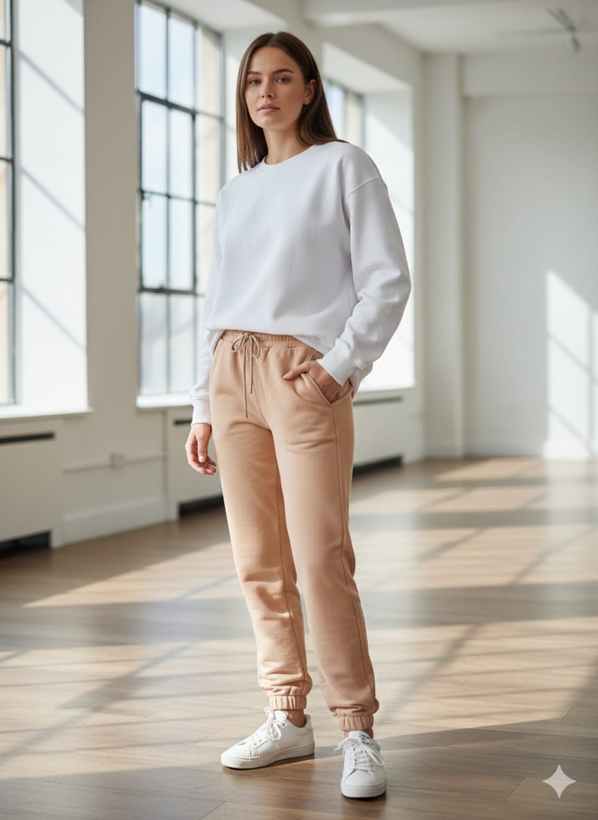 Pantaloni damă cu design modern, ideali pentru purtare zilnică, relaxare sau ținută de casă. Elastic in talie, prevăzută cu șnur reglabil,buzunare laterale funcționale,manșete elastice la gleznă.
