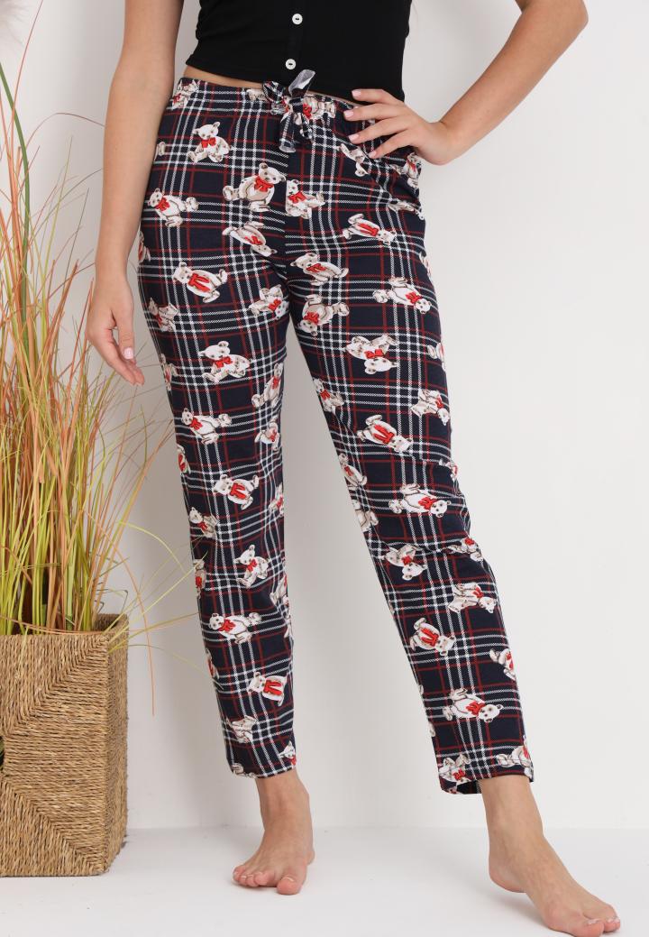 Pantaloni de Pijama Dama ,Culoare Bleumarin cu Ursuleti Crem ,Engros