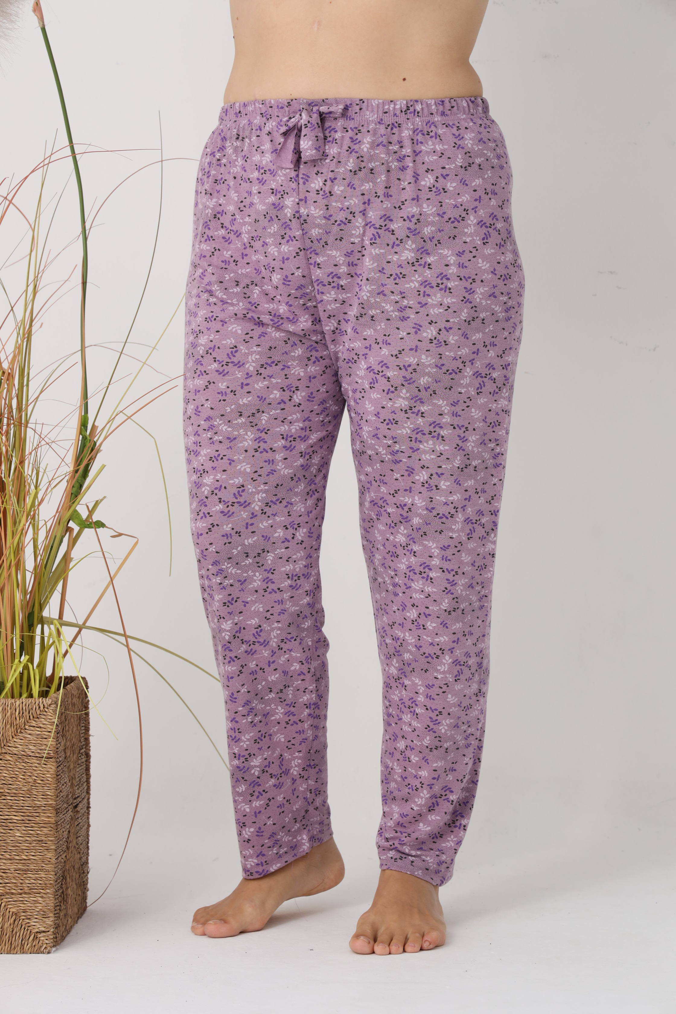 Pantaloni de Pijama Dama Lungi,Big Size,Culoare Mov cu Floricele,Engros