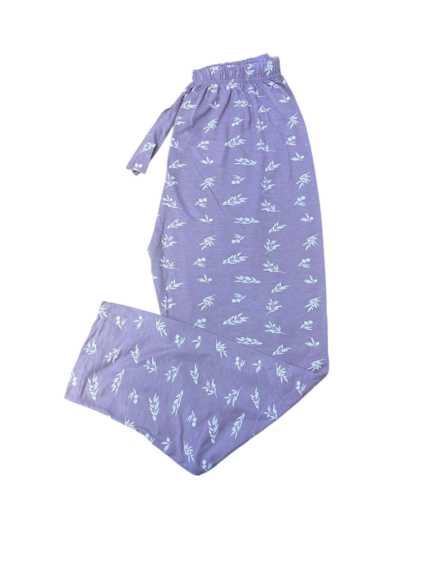 Pantaloni de Pijama Dama Lungi,Big Size,Culoare Mov cu Alb, Engros