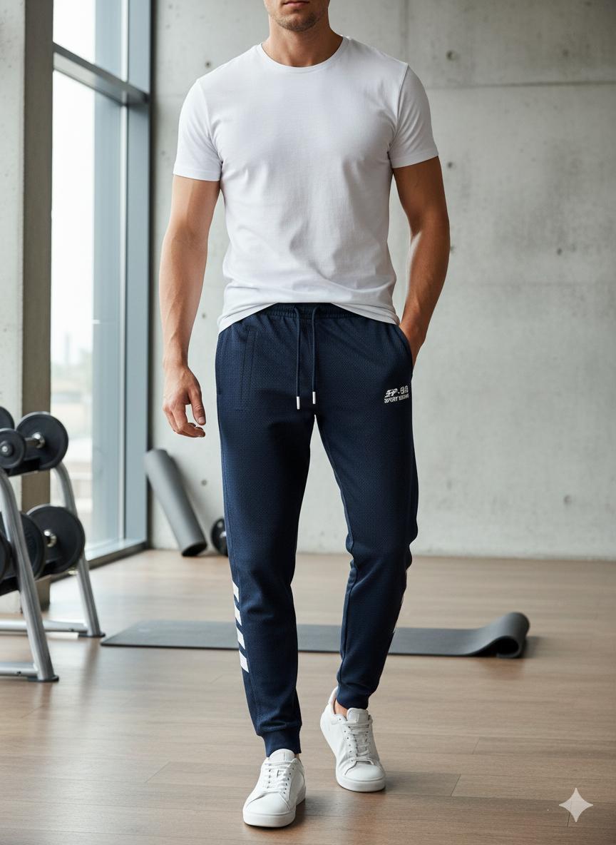Pantaloni de sport pentru bărbați, confecționați din material confortabil și plăcut la purtare, ideali pentru activități sportive sau ținute casual. Talia elastică cu șnur permite ajustarea ușoară, iar manșetele elastice oferă o fixare bună pe gleznă. Model modern, cu buzunare laterale și imprimeu text pe picior.