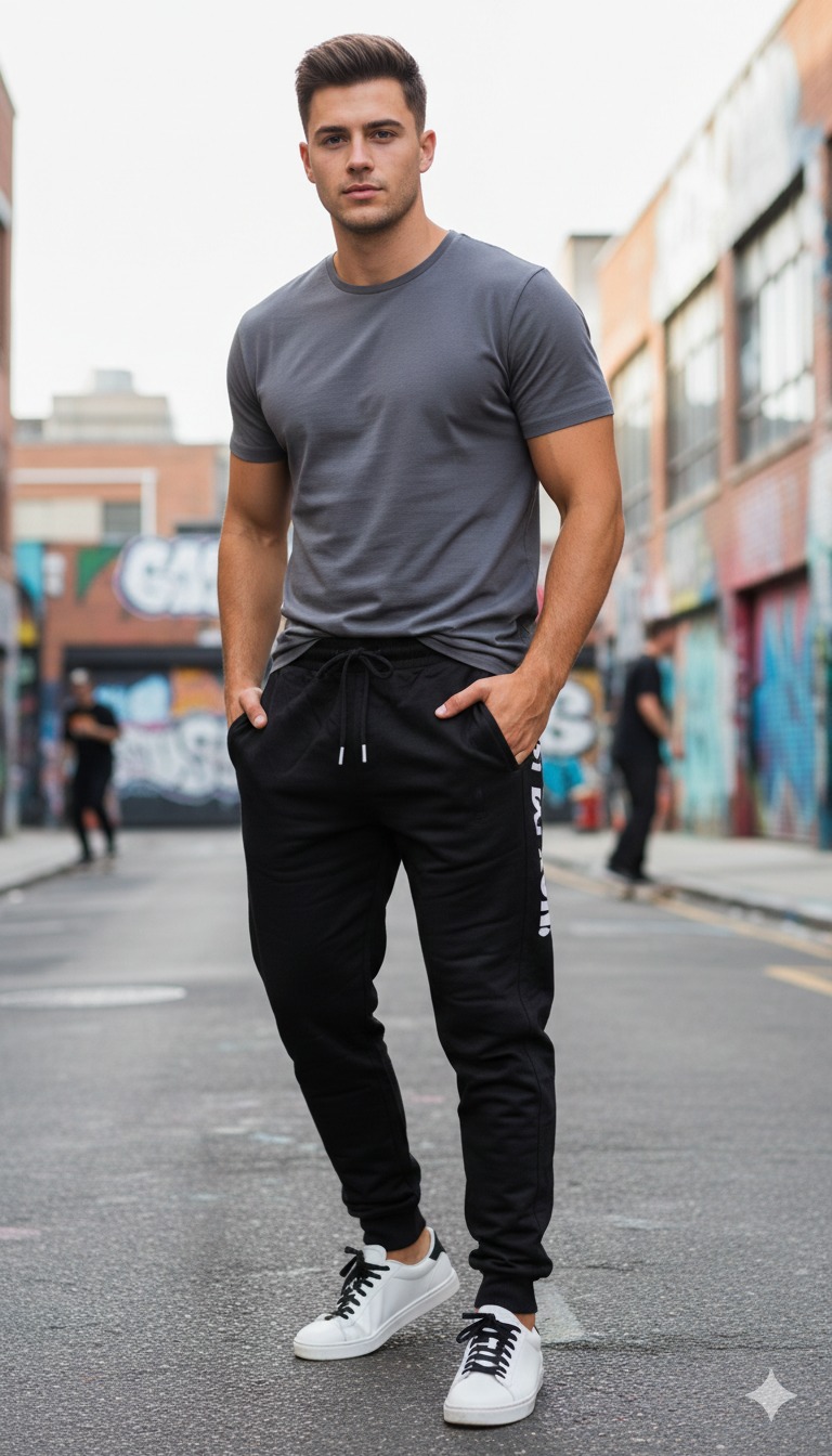 Pantaloni de sport pentru bărbați, concepuți pentru confort și funcționalitate. Realizați din material de calitate, plăcut la atingere, oferă libertate de mișcare și rezistență în timp. Designul modern este completat de talia elastică cu șnur reglabil și buzunare practice.
