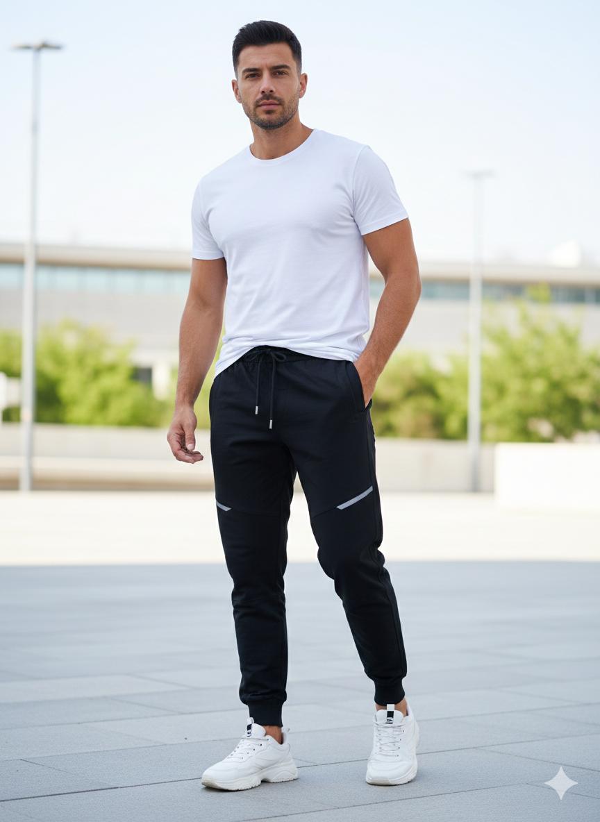 Pantaloni de sport pentru bărbați, concepuți pentru confort și funcționalitate. Realizați din material de calitate, plăcut la atingere, oferă libertate de mișcare și rezistență în timp. Designul modern este completat de talia elastică cu șnur reglabil și buzunare practice.